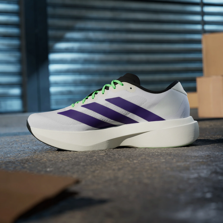 The Adidas Adizero Evo SL 'White Purple' is a high-speed "Super Trainer" that channels the record-breaking DNA of the Adizero family into a versatile daily runner. Stripping away the carbon plate in favor of a natural, fluid feel, it provides the elite bounce of Lightstrike Pro foam for those who live the "Fast Culture" on and off the track.