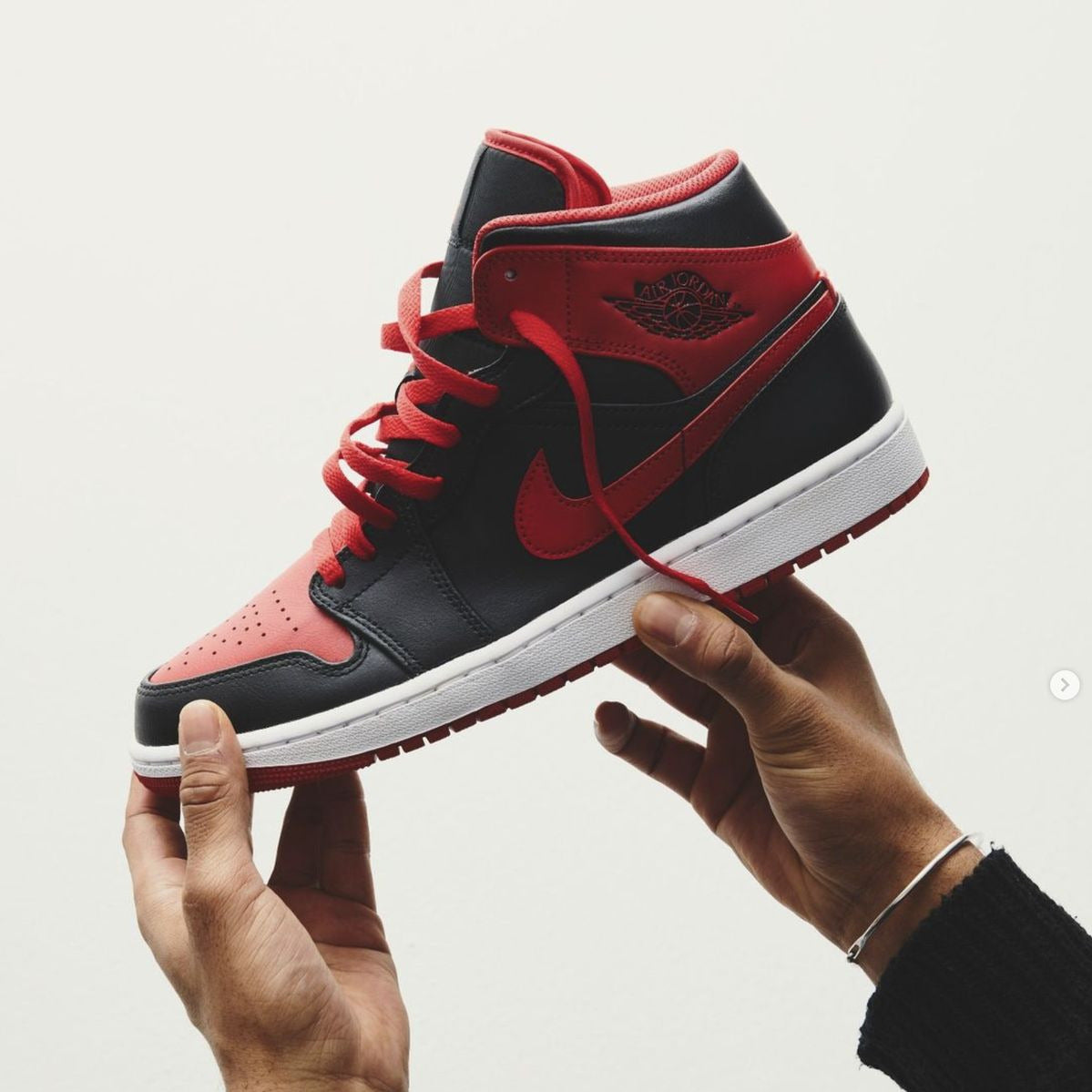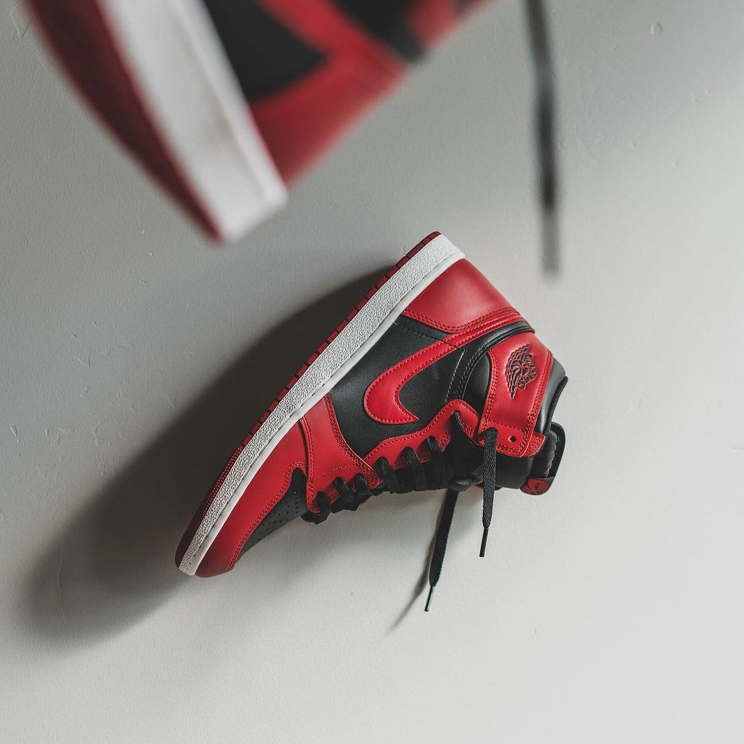 The Air Jordan 1 Mid 'Alternate Bred / Black Fire Red' is a striking homage to the most legendary colorway in basketball history. By shifting the classic red-and-black distribution of the original 1985 "Bred," this iteration offers a fresh but familiar "Alternate" look. The design features a predominantly black leather heel and eyestays, while the "Fire Red" is reserved for the toe box, Swoosh, and ankle collar. This subtle reconfiguration creates a sleeker, more modern aesthetic while maintaining the aggressive Chicago Bulls DNA that fans demand.