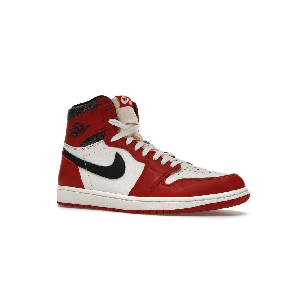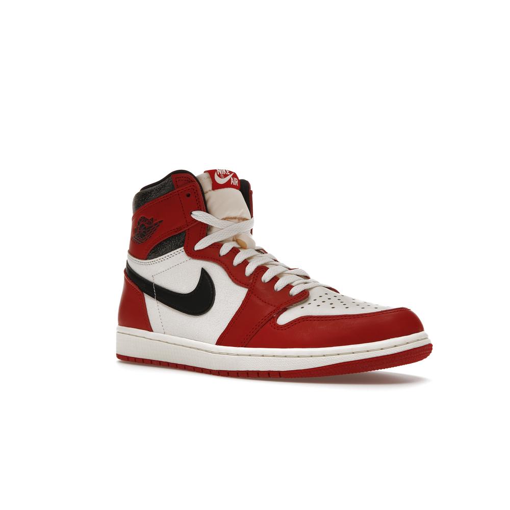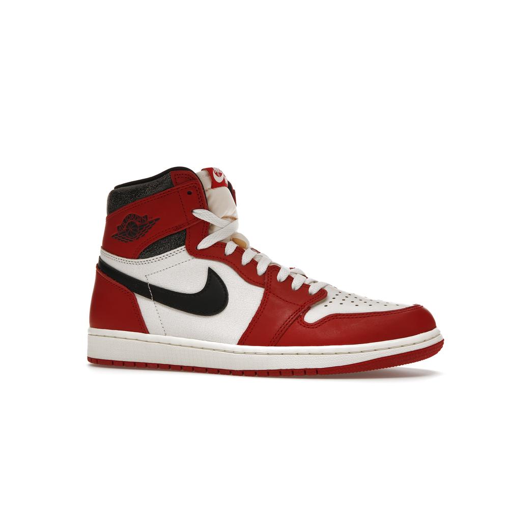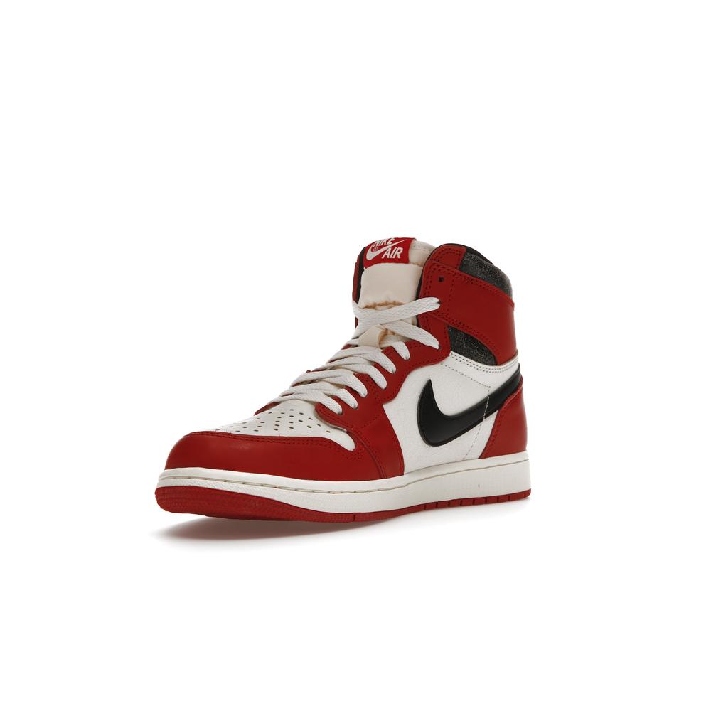 The Air Jordan 1 Retro High OG ‘Chicago Lost & Found’ brings back the iconic silhouette that started it all. Featuring the high-cut shape of the original 1985 release, the leather upper combines a white base with a black signature Swoosh and scarlet overlays at the forefoot and heel. Cracked black leather appears on the padded collar, while a vintage pre-yellowed finish is applied to the white rubber midsole. The vintage ‘80s aesthetic extends to the special packaging, highlighted by a damaged box plastered with sale stickers and topped with a mismatched replacement lid. An accompanying sales invoice is emblematic of a time when the Air Jordan 1 lingered on the shelves of mom and pop stores, eventually making their way into the hands of lucky customers at a steep discount.