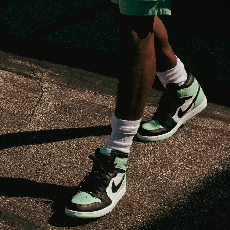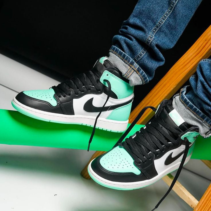 The design takes the iconic structure of the "Black Toe" and gives it a jolt of pure, digital energy. A clean white base and sharp black overlays provide the perfect canvas. But the classic red is replaced with a brilliant, almost-luminous "Green Glow"—the color of a circuit board or a line of code in a dark room.