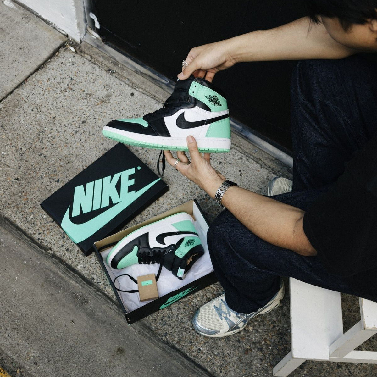 This is the legend, seen through a digital lens. The Air Jordan 1 High "Green Glow" is a tribute to the high-tech, modern world, a shoe that takes a classic color blocking and gives it an electric, futuristic soul.