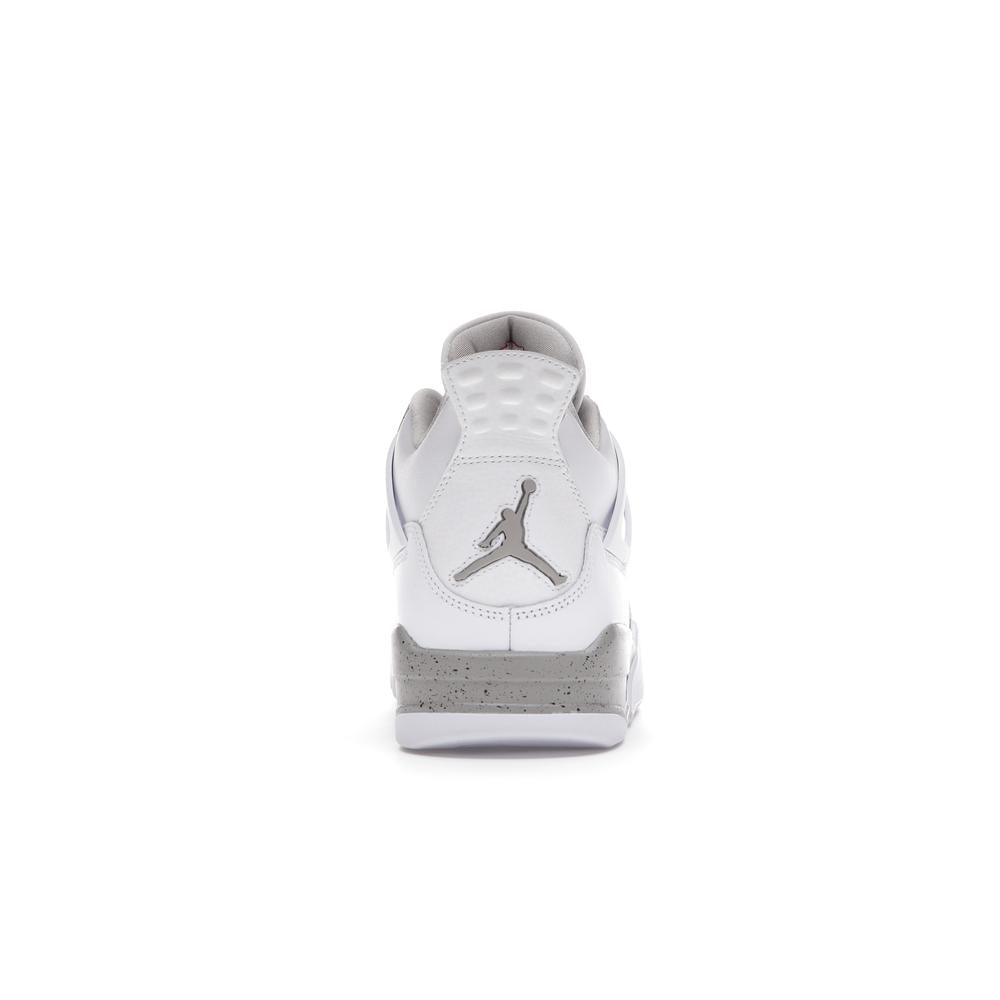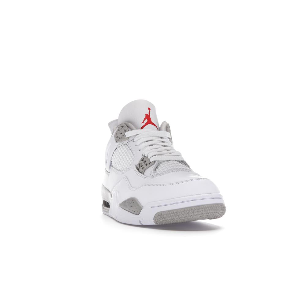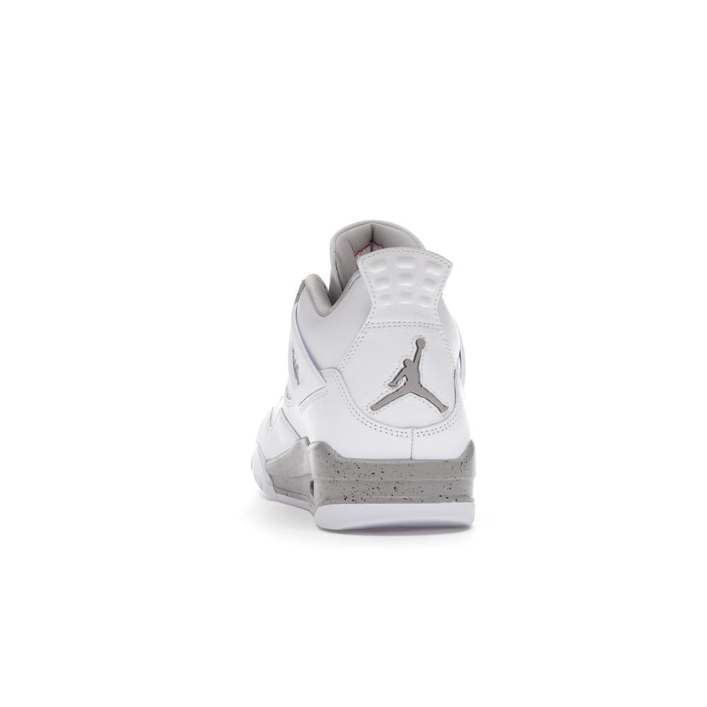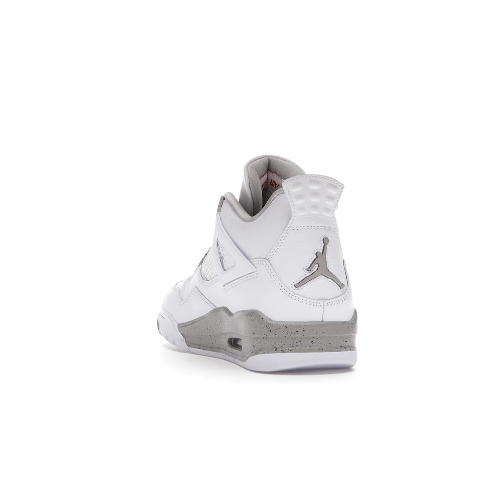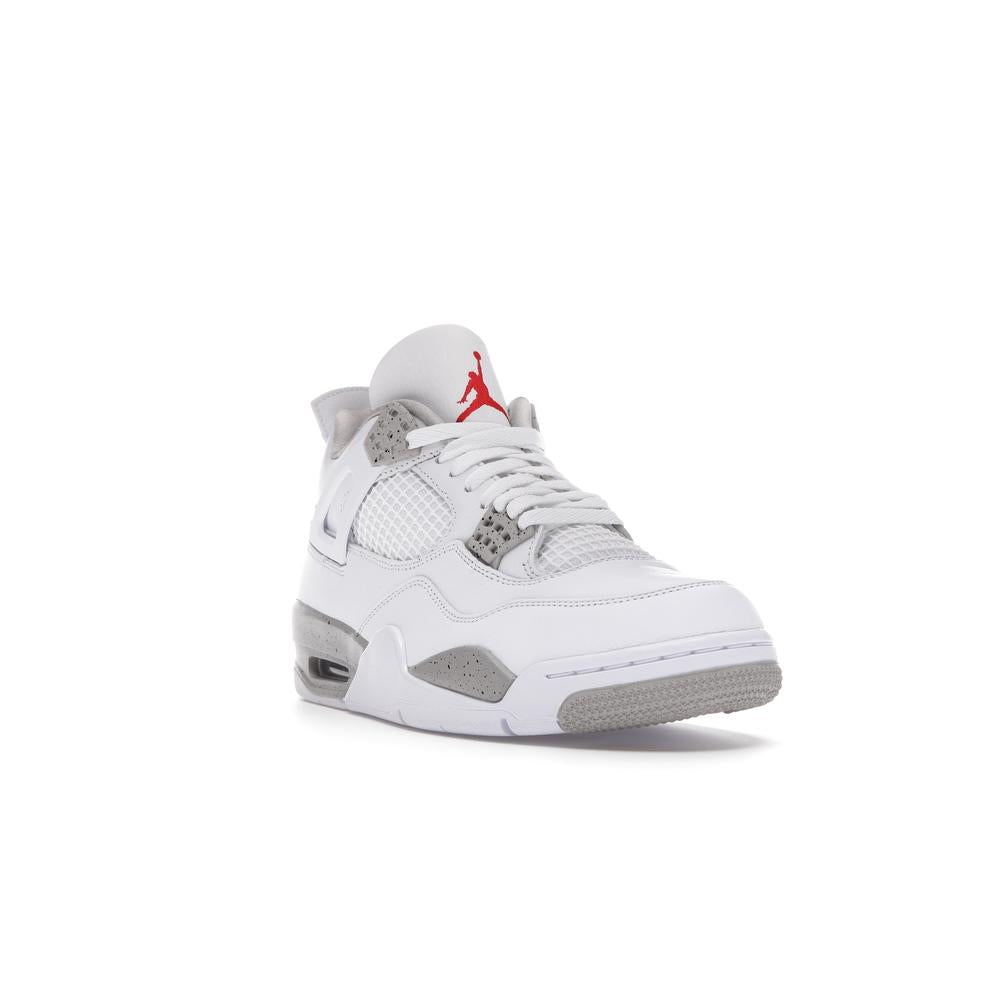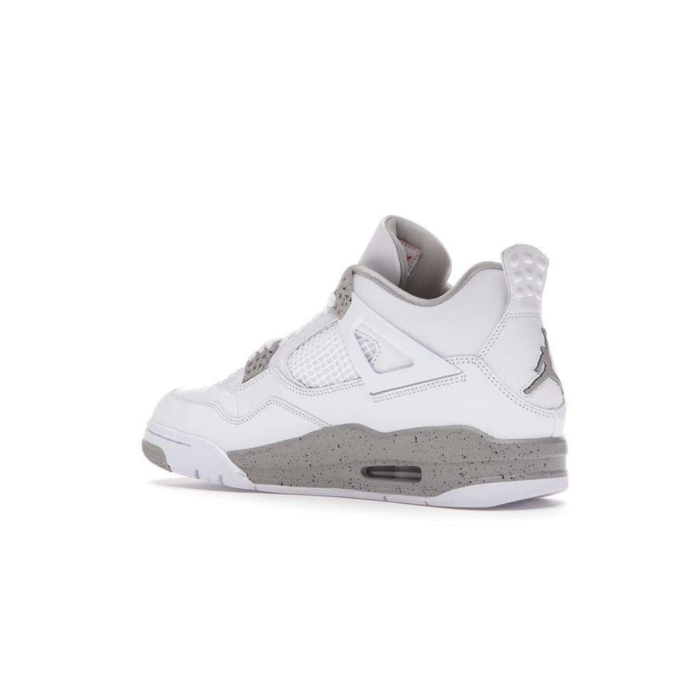 This iconic sneaker features a premium white leather upper accented with black detailing, paying homage to the classic "Oreo" colorway. The translucent mesh side panels and signature Air Jordan branding add a touch of modern style. Experience the legendary comfort and performance of the Air Jordan 4 with this timeless and sought-after design.