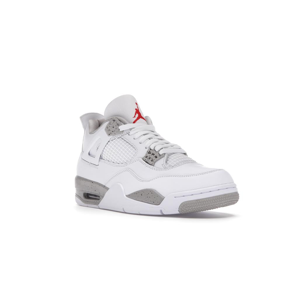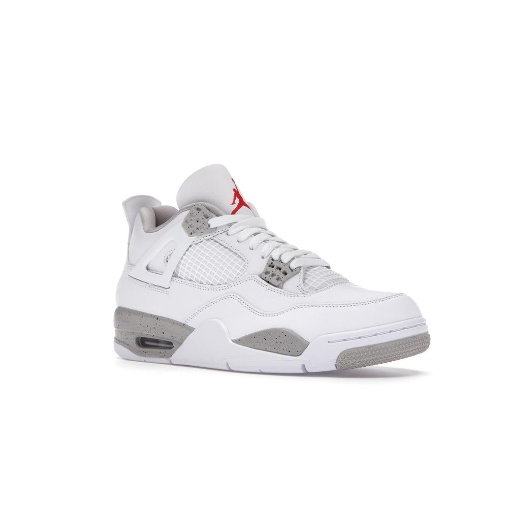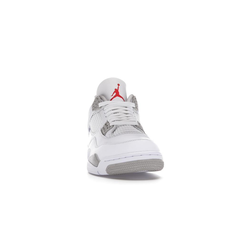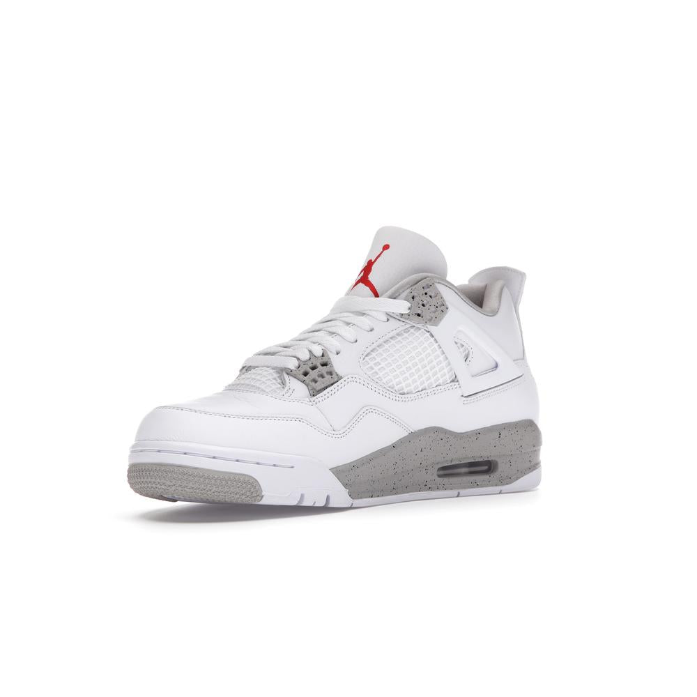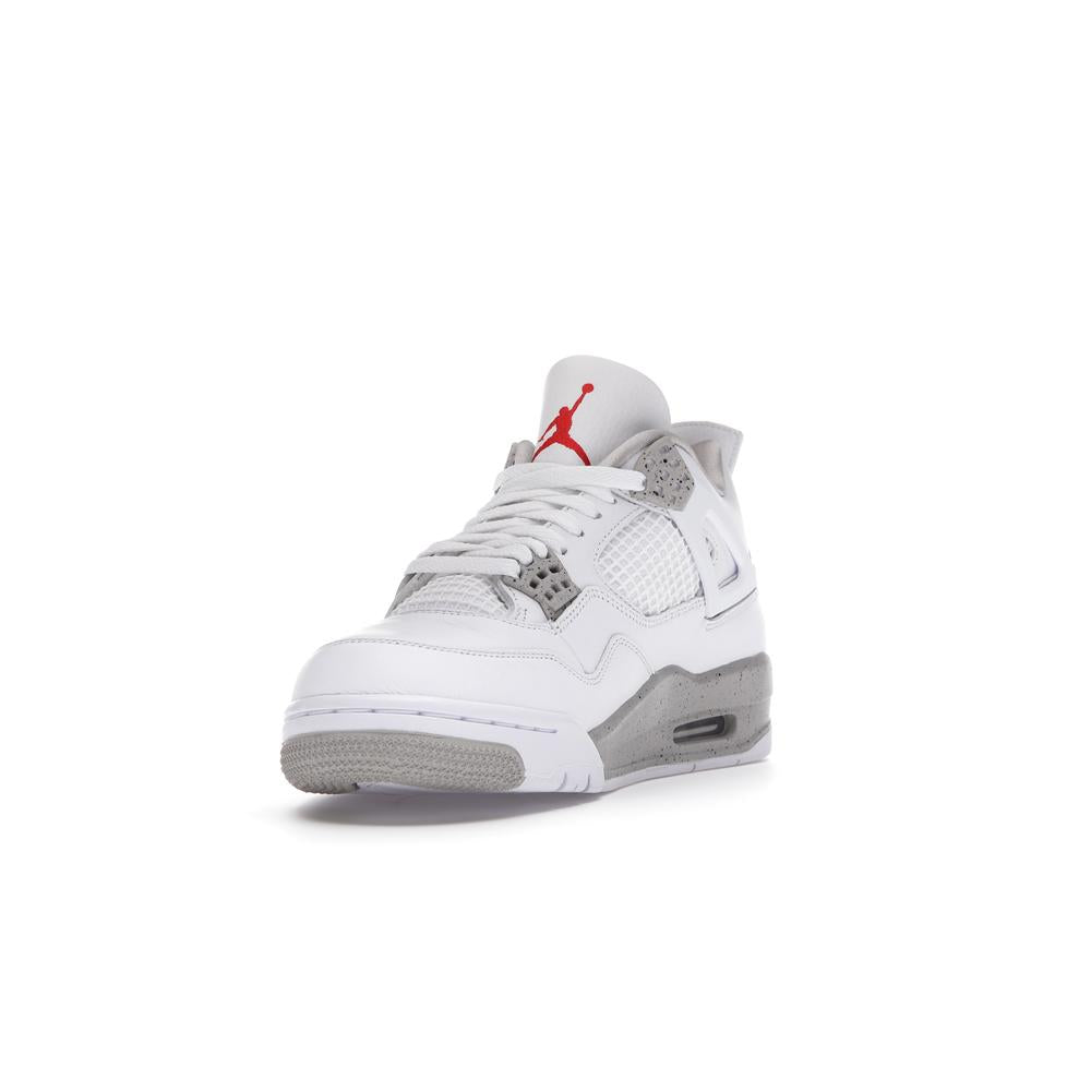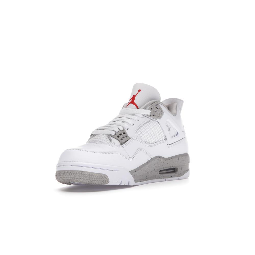 This iconic sneaker features a premium white leather upper accented with black detailing, paying homage to the classic "Oreo" colorway. The translucent mesh side panels and signature Air Jordan branding add a touch of modern style. Experience the legendary comfort and performance of the Air Jordan 4 with this timeless and sought-after design.