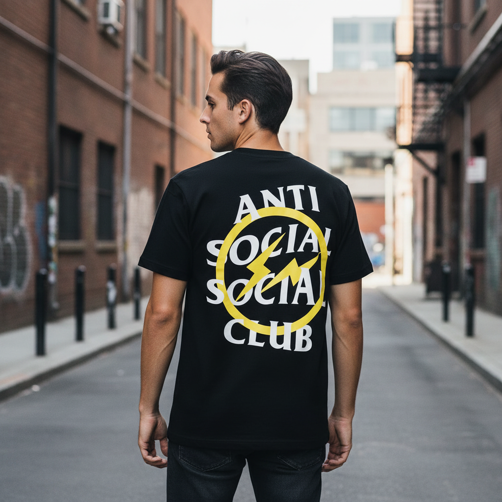 The Anti Social Social Club x Fragment Design Yellow Bolt Tee in Black is a striking fusion of bold streetwear and high fashion. Featuring a vibrant yellow lightning bolt graphic and Hiroshi Fujiwara’s Fragment Design logo, this tee brings an electrifying twist to your wardrobe. Made from premium cotton, it ensures comfort with a standout style.