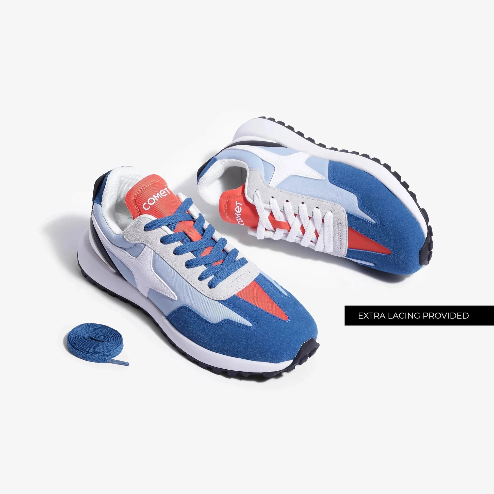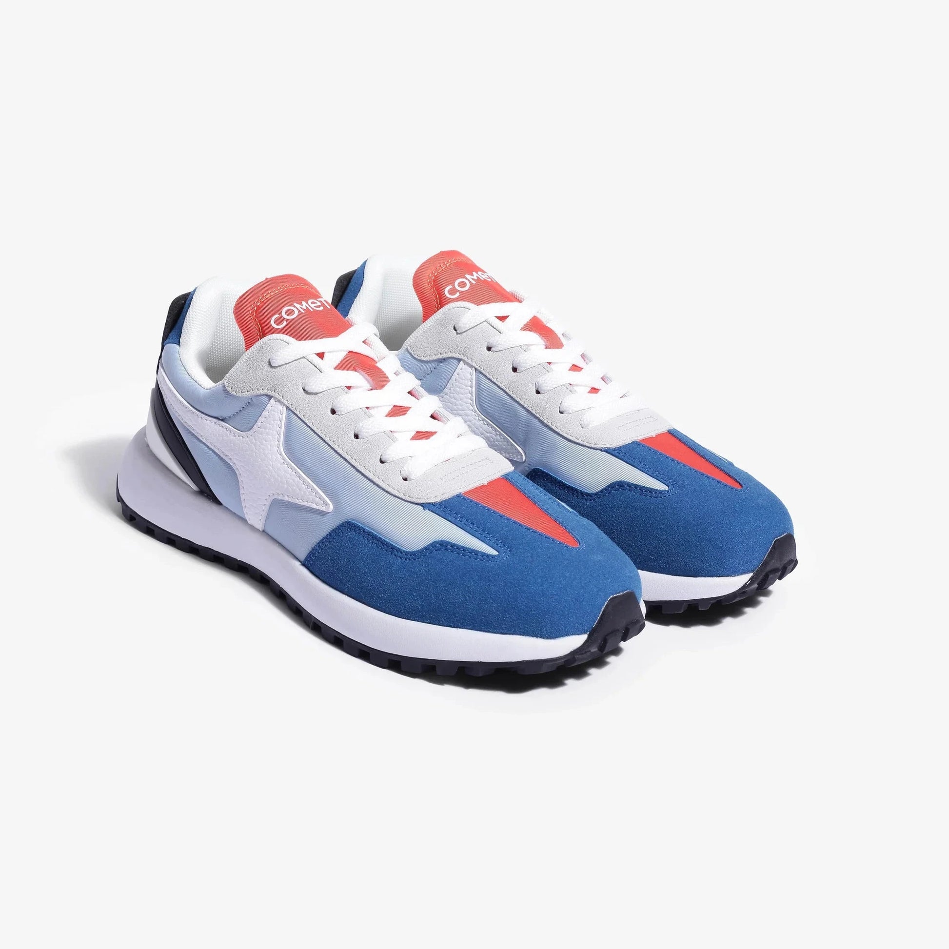 Azure, like the limitless sky. Azure, like the tranquil waters. Azure, like a burst of bright colour on the blank canvas of comfort. Shades of blue come together with chic accents of coral in AZURE. Step into them and get ready to kick up a notch with a dash of cool and oodles of comfort.