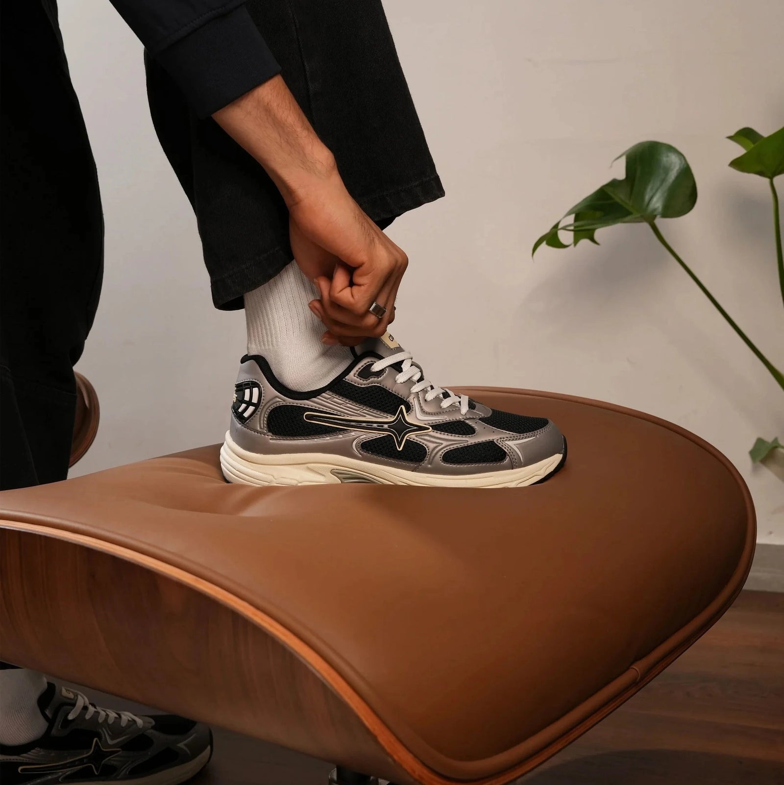 Obsidian is a sport-inspired lifestyle sneaker named after volcanic glass, formed under pressure and refined over time. A deep grey base is layered with dark black accents, letting structure and material take the lead.
