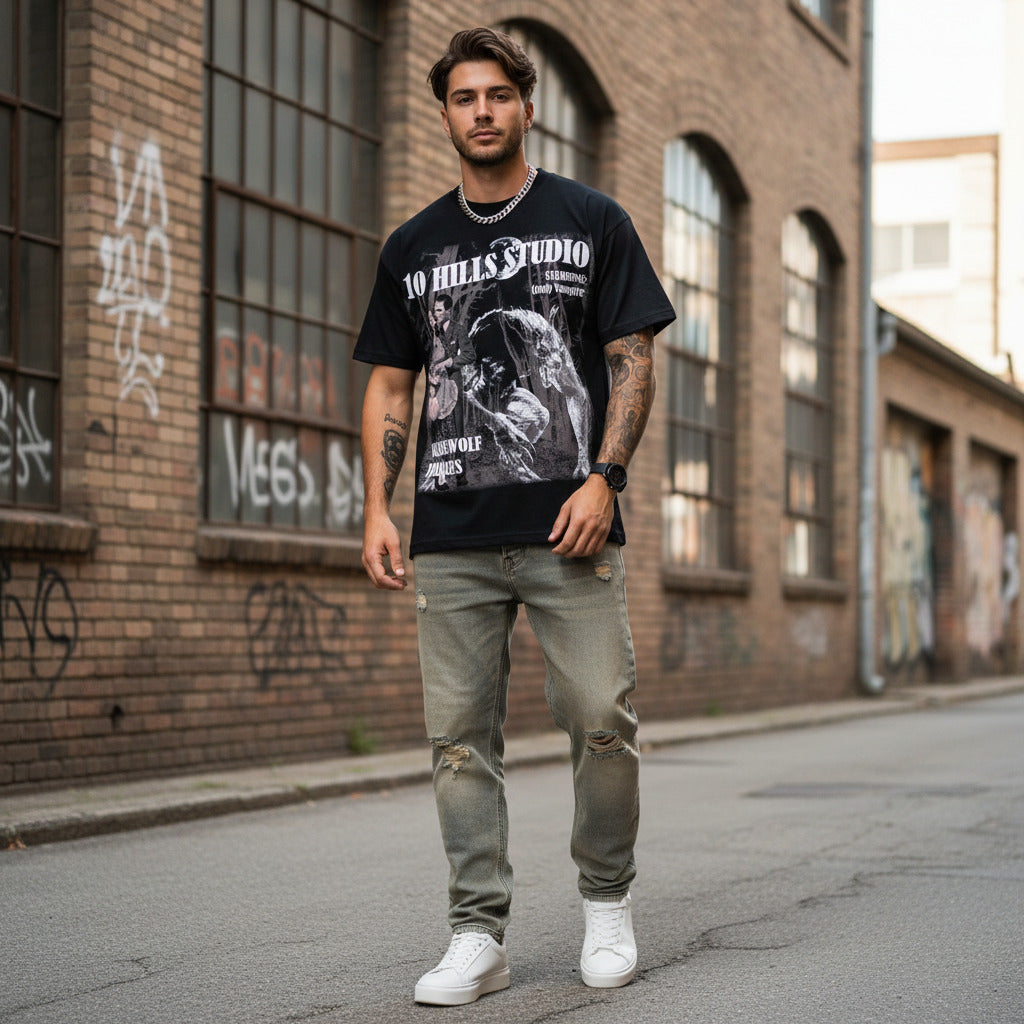 Honestly both. The graphics catch attention, but the oversized fit is what makes it look right in real life.