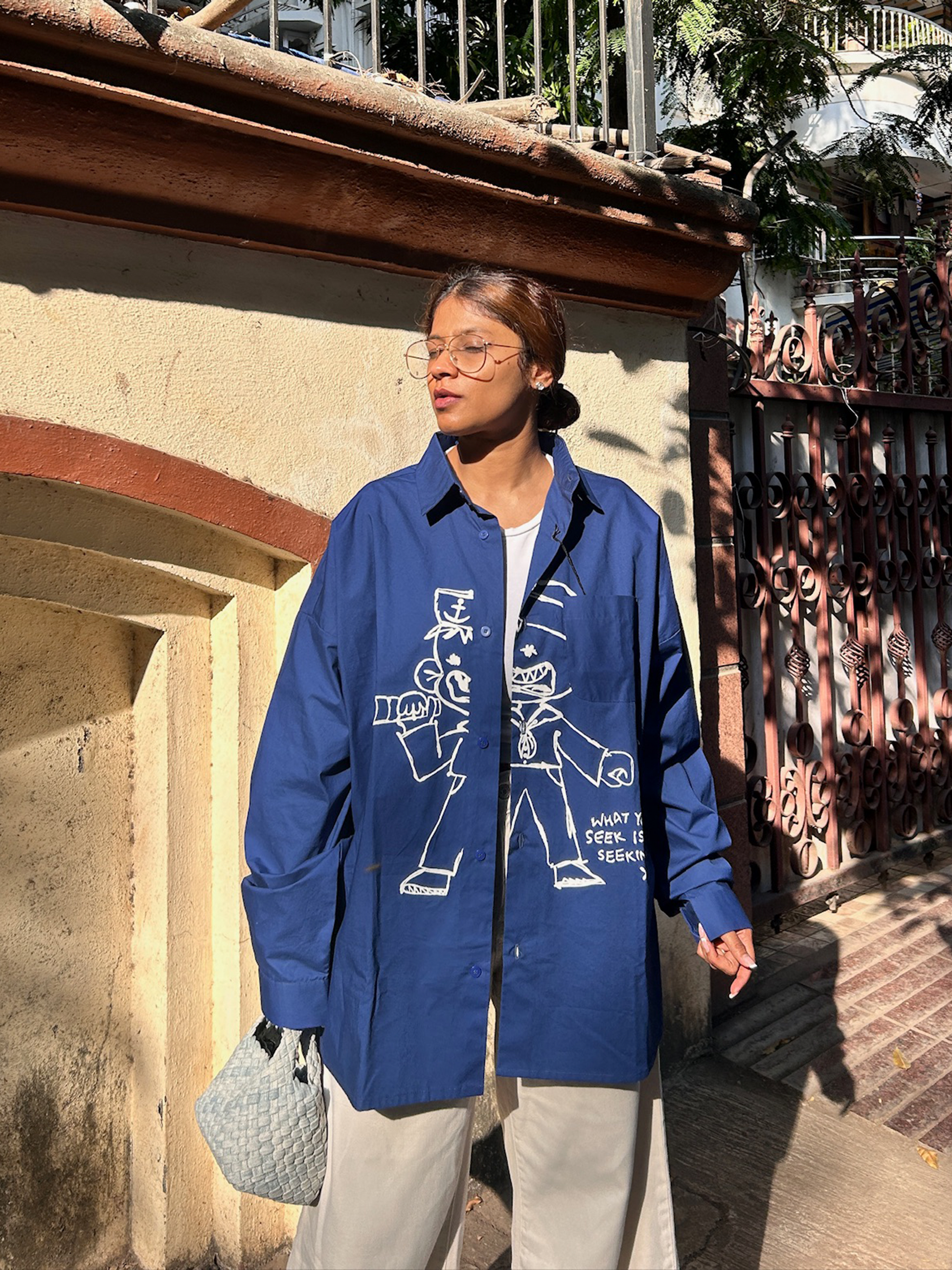 Exhale Label Oversized Shirt Blue - Jaskiran