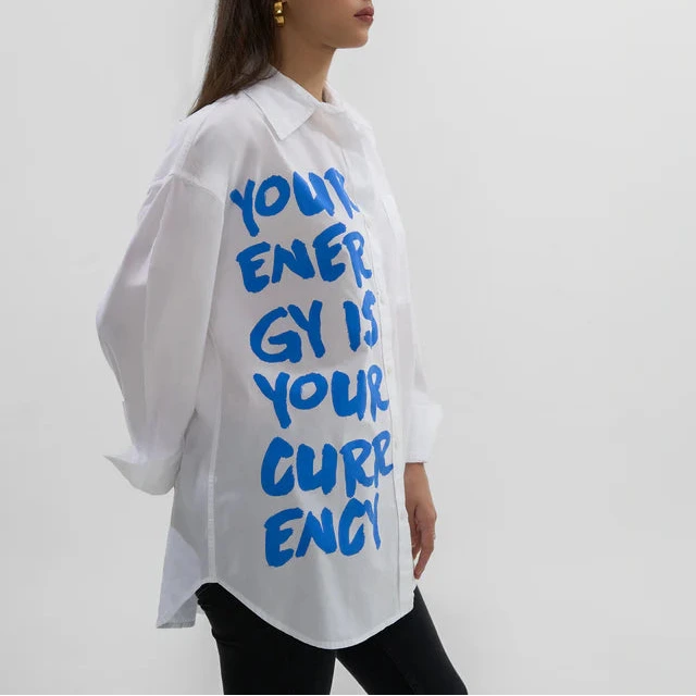 A wonderfully unfussy oversized shirt. French tuck into shorts, wear it as a beach cover up, or create an athleisure look by pairing it with a sweatshirt and biker shorts. A perfect description of your energy, also your currency, spend it well and invest it wisely!