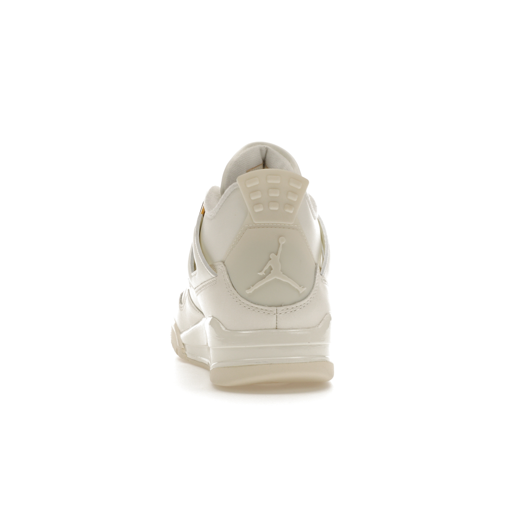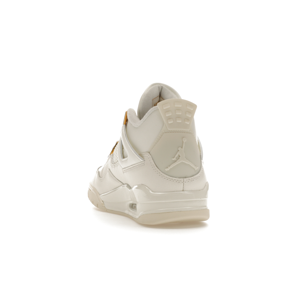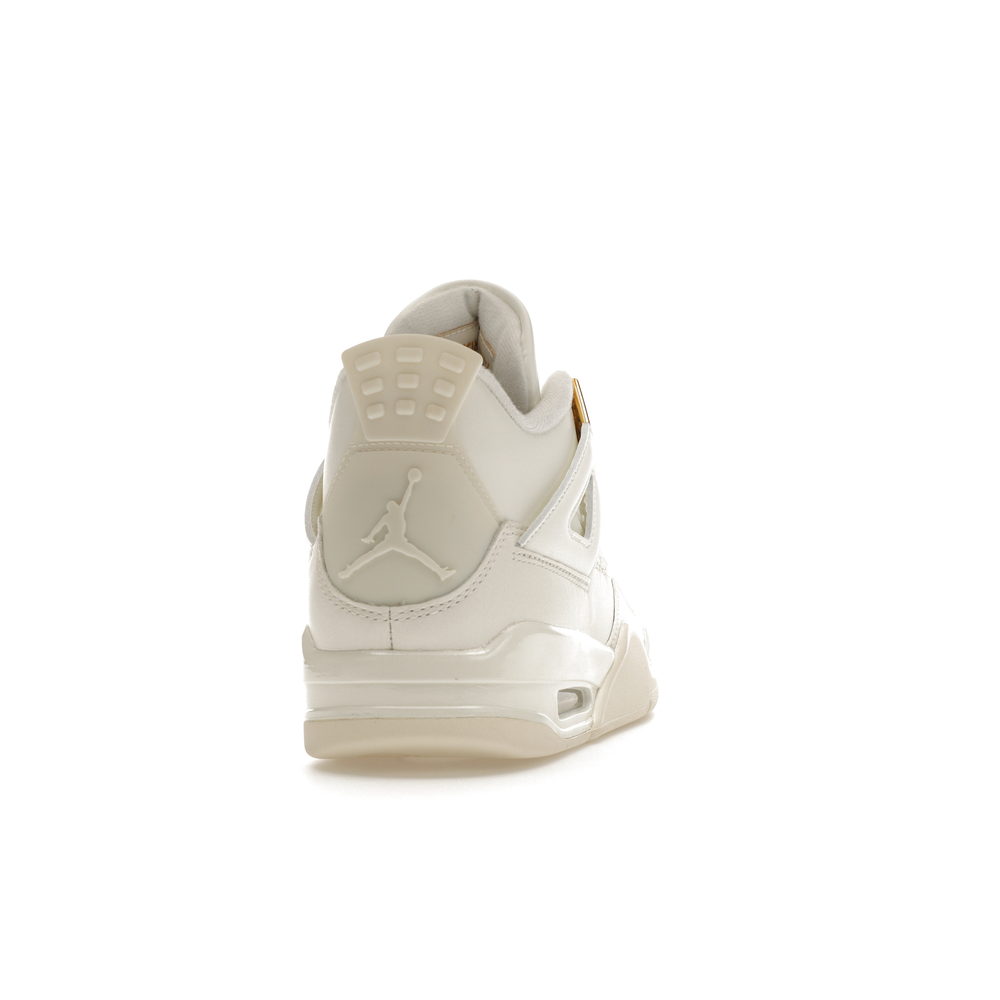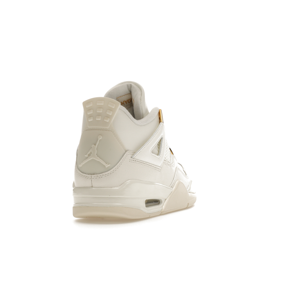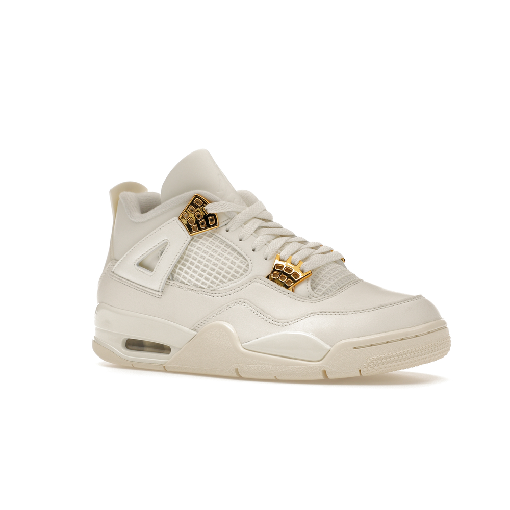 The Jordan 4 Retro Metallic Gold (Women's) elevates the classic Air Jordan 4 design with an elegant off-white Sail hue and eye-catching gold accents.
