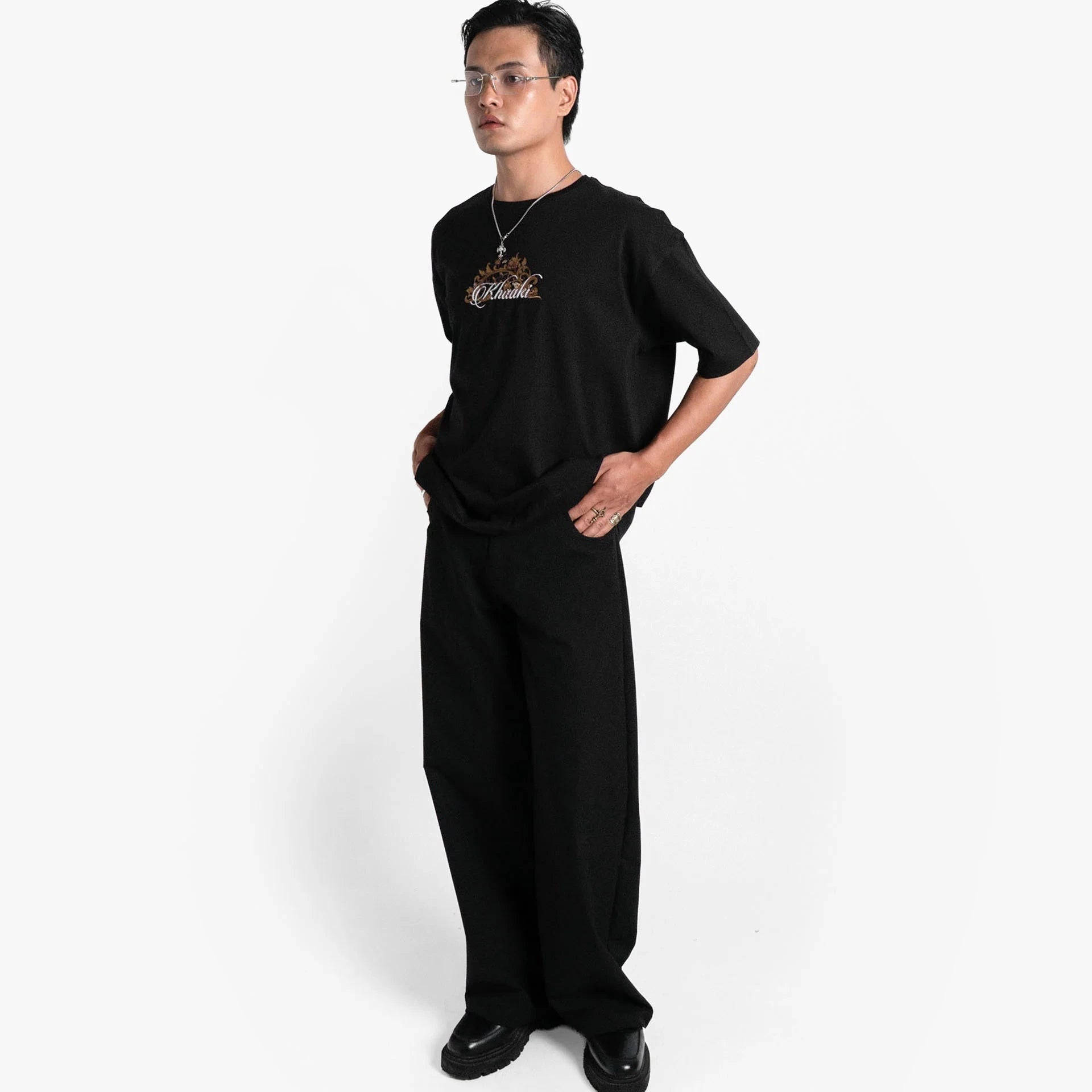 Crafted from heavyweight 100% mercerized cotton and finished with a luxurious double silicone wash, this piece showcases nearly 3 lakh embroidery stitches in earthy tones, weaving a regal scene of swans, roses, and vintage baroque flourishes. The detailed embroidery on the chest adds a refined contrast, perfectly tying in with the majestic full-back artwork.
