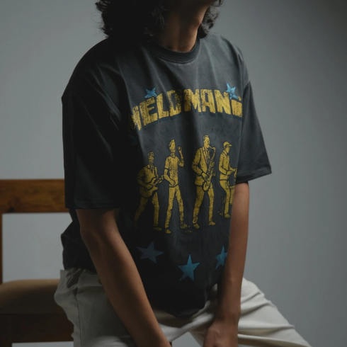 A tribute to timeless sound and rhythm, the Melomanic Tee captures the raw energy of live performances and the nostalgia of vintage band culture. Featuring bold retro artwork with a pigment-washed finish, it delivers a lived-in look that feels effortlessly authentic. Built from heavyweight cotton with added stretch, this piece balances comfort, durability, and street-ready styling.