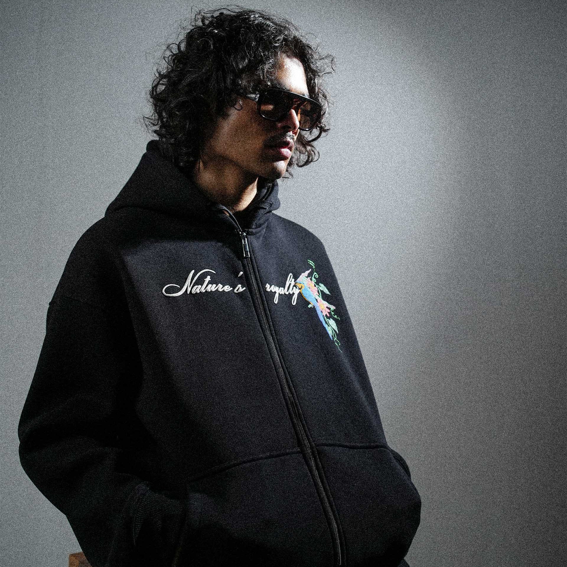 The Nature’s Royalty Hoodie is crafted from rich 450 GSM Cotton 3-Thread Lycra Fleece, offering a heavyweight, structured feel with added stretch for comfort. Finished with a double silicone wash, the fabric stays smooth, soft, and elevated.