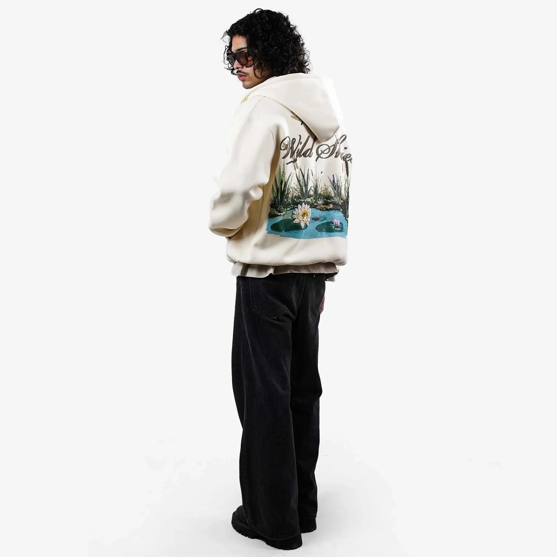 The Wild Skies Hoodie is crafted from premium 400 GSM Cotton 3-Thread Fleece with a smooth double silicone finish, giving it a rich, soft, and elevated feel. Its oversized zip-up silhouette brings a clean, modern streetwear look.