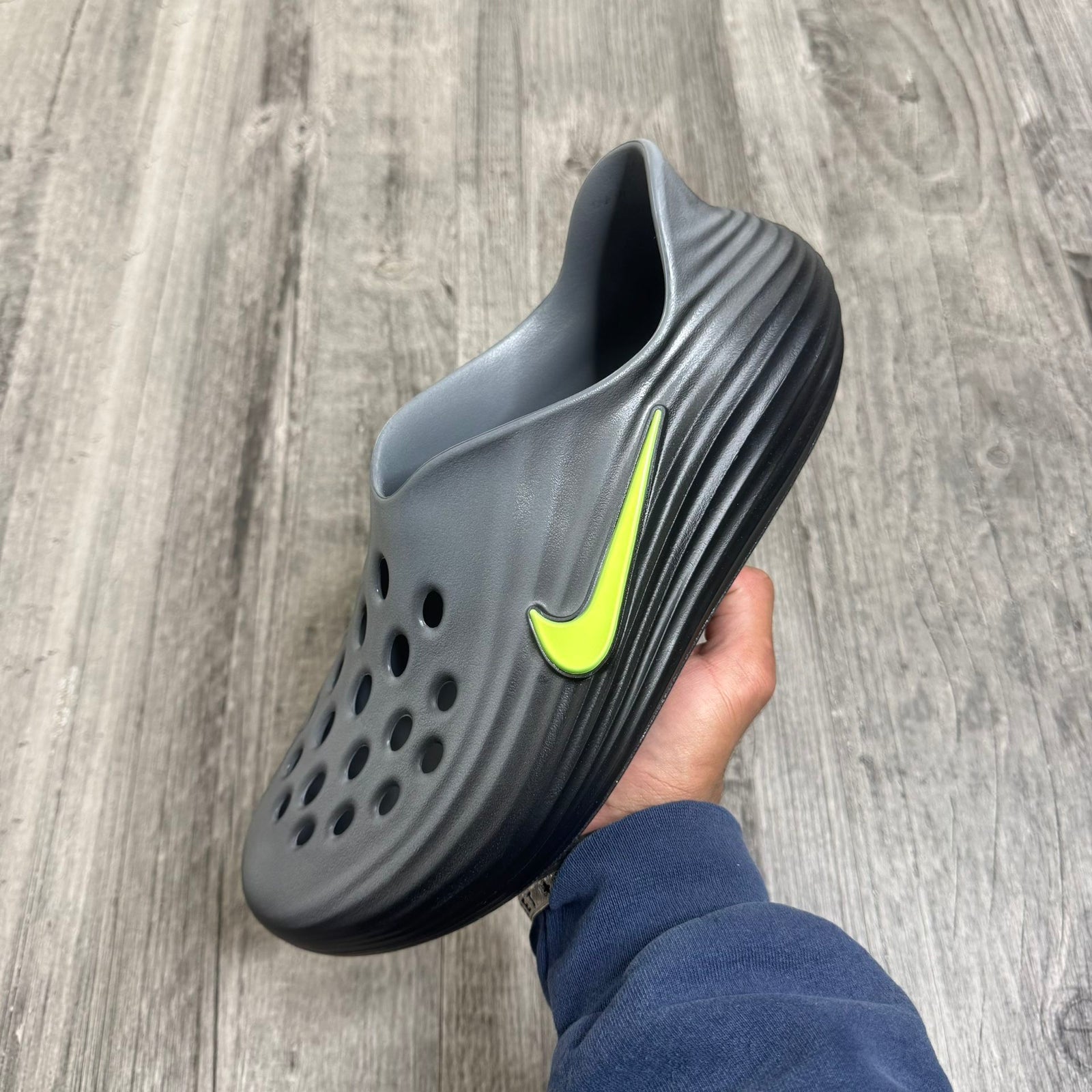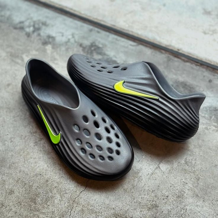 The Nike ReactX Rejuven8 'Black Volt' is a high-performance recovery silhouette designed to offer maximum relief after intense athletic activity. Drawing conceptual inspiration from the 2008 Beijing Olympics, this modern iteration utilizes Nike’s latest sustainable foam technology to create a seamless, slip-on experience that bridges the gap between a performance trainer and a casual mule.