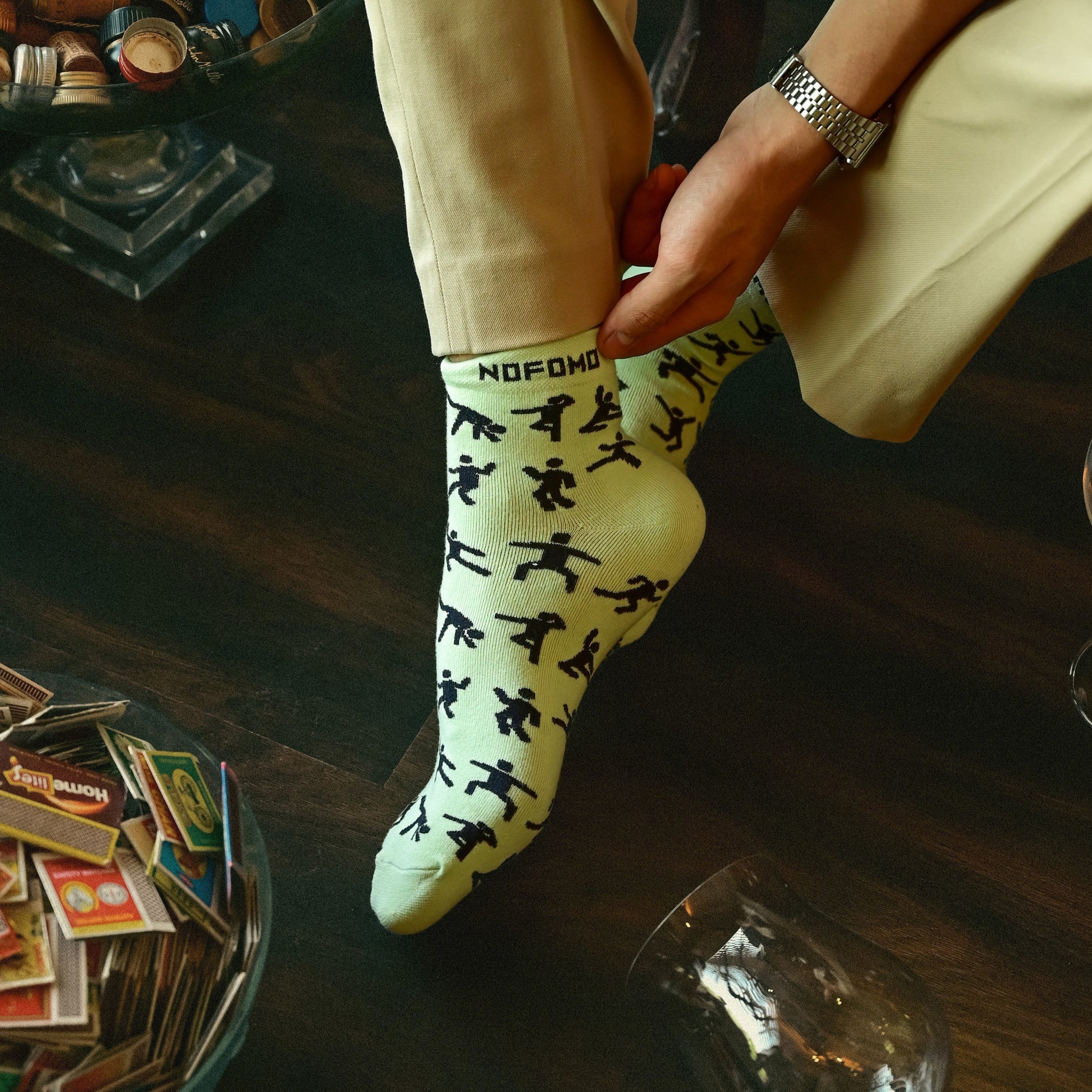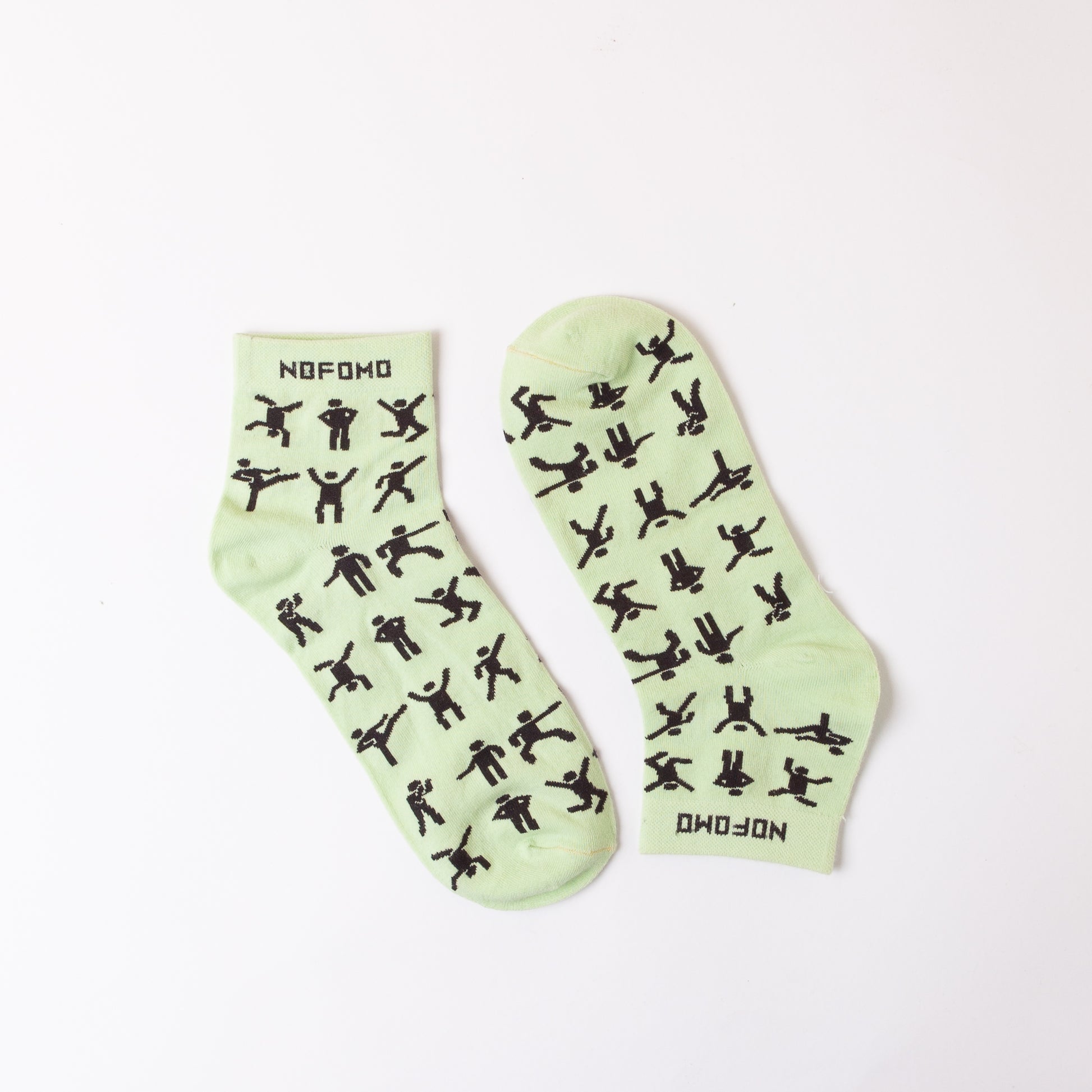 Expressive minimalism for your feet. With quirky stick figure designs, these socks add an element of fun to your style. Step up your fashion game and let your feet do the talking!