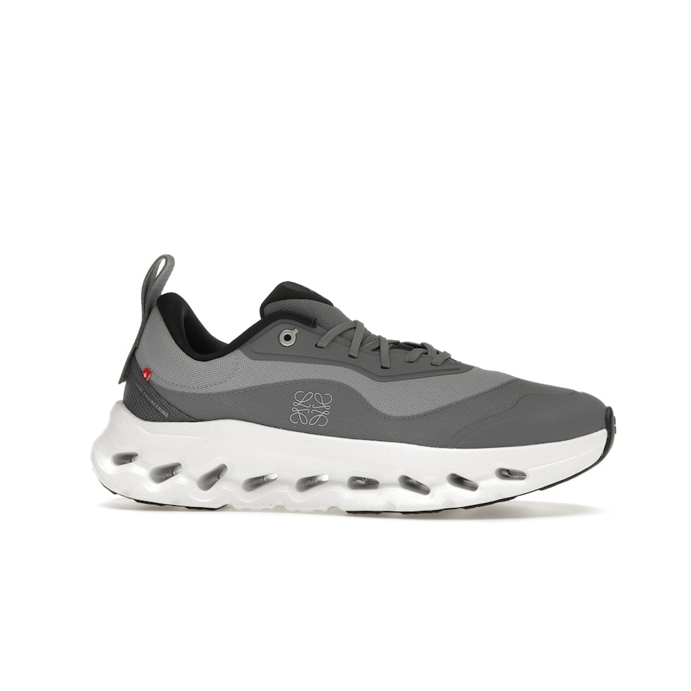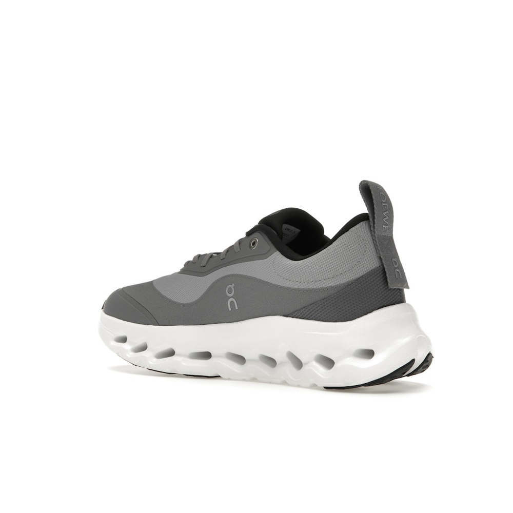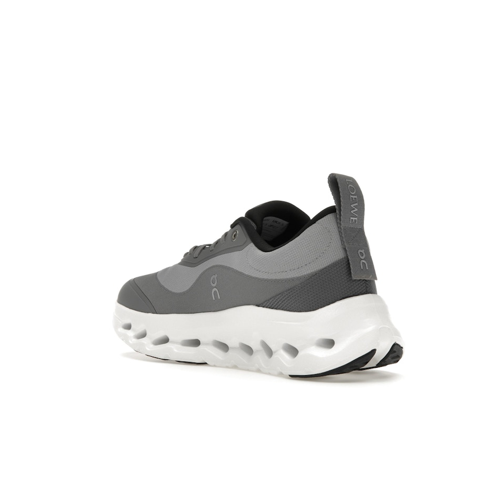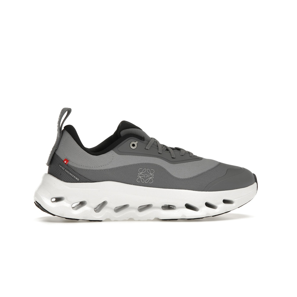 Refined and futuristic, the On Running Cloudtilt 2 Loewe Grey brings together high fashion and performance like never before. Crafted through the exclusive partnership between Swiss performance giant On Running and luxury fashion house Loewe, this silhouette is engineered for movement and modern aesthetics. The upper features 100% recycled polyester mesh in an elegant grey tone, delivering breathable comfort and understated luxury. CloudTec Phase cushioning adapts to every step, offering a smooth ride whether you’re on the move or off-duty. With seamless co-branding, a sculpted design, and advanced tech, the On Running Cloudtilt 2 Loewe Grey is the ultimate everyday sneaker for those who prioritize both form and function.