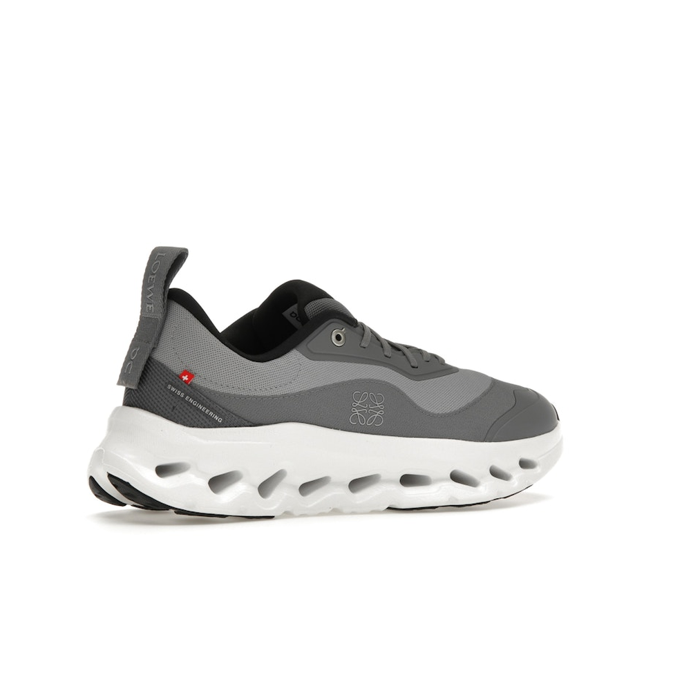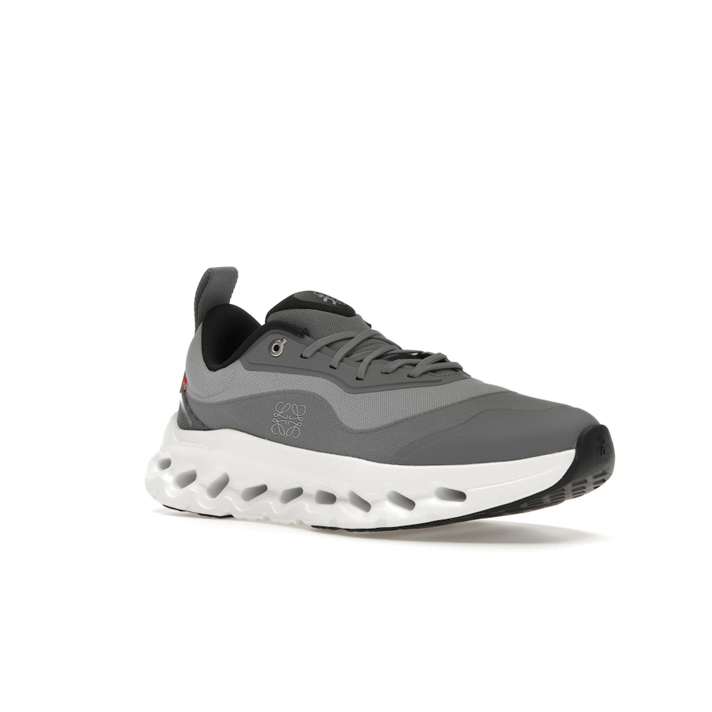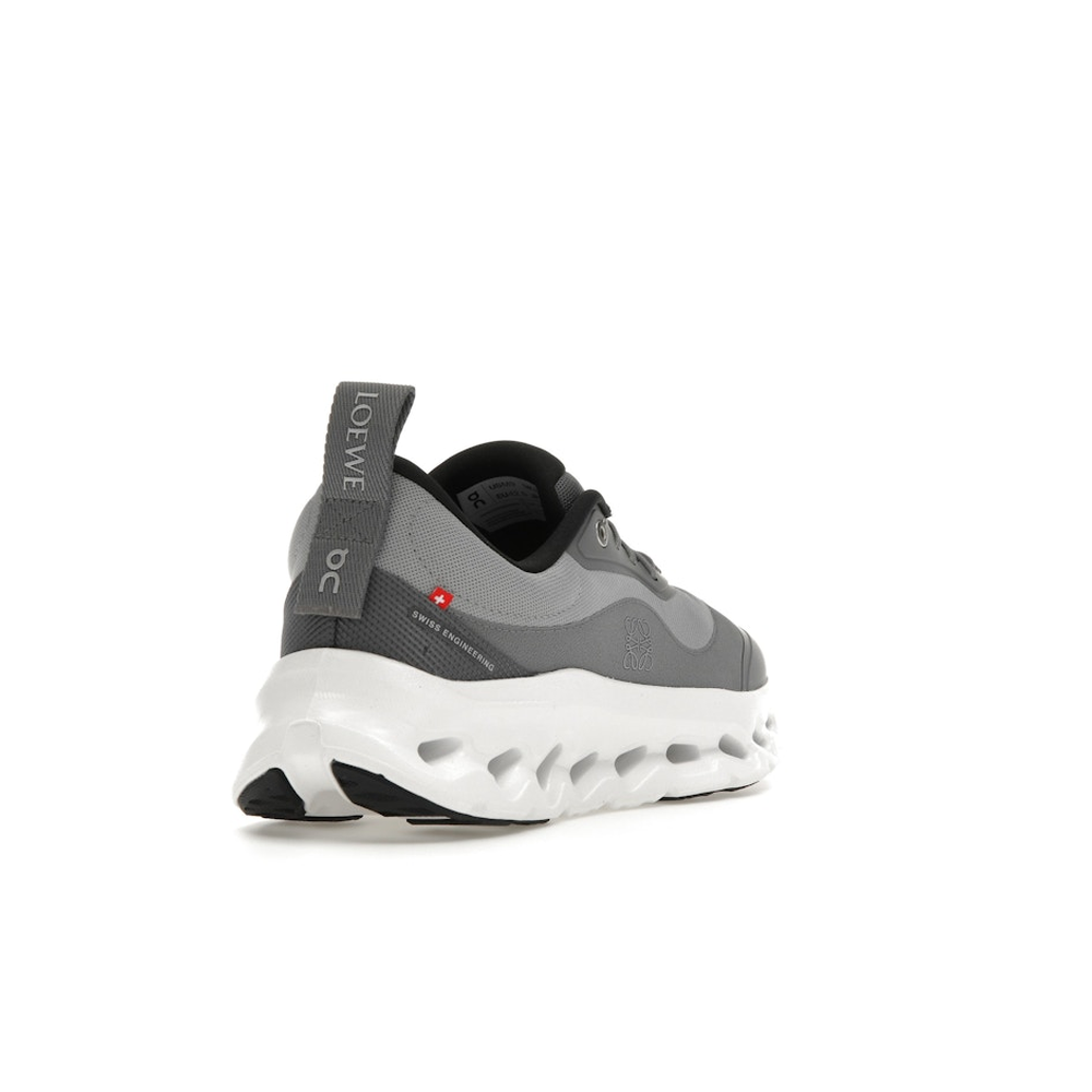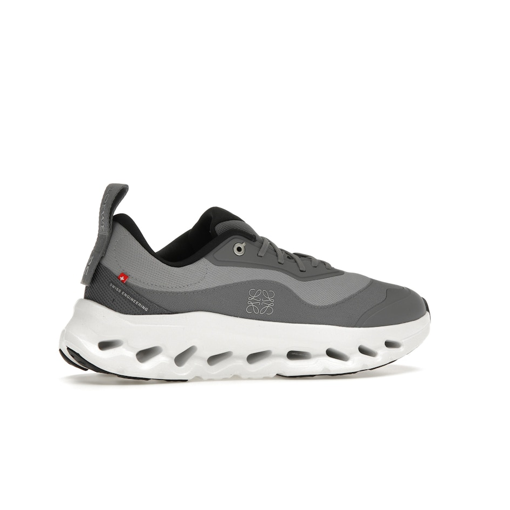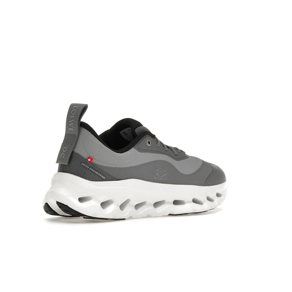 Refined and futuristic, the On Running Cloudtilt 2 Loewe Grey brings together high fashion and performance like never before. Crafted through the exclusive partnership between Swiss performance giant On Running and luxury fashion house Loewe, this silhouette is engineered for movement and modern aesthetics. The upper features 100% recycled polyester mesh in an elegant grey tone, delivering breathable comfort and understated luxury. CloudTec Phase cushioning adapts to every step, offering a smooth ride whether you’re on the move or off-duty. With seamless co-branding, a sculpted design, and advanced tech, the On Running Cloudtilt 2 Loewe Grey is the ultimate everyday sneaker for those who prioritize both form and function.