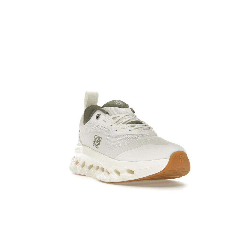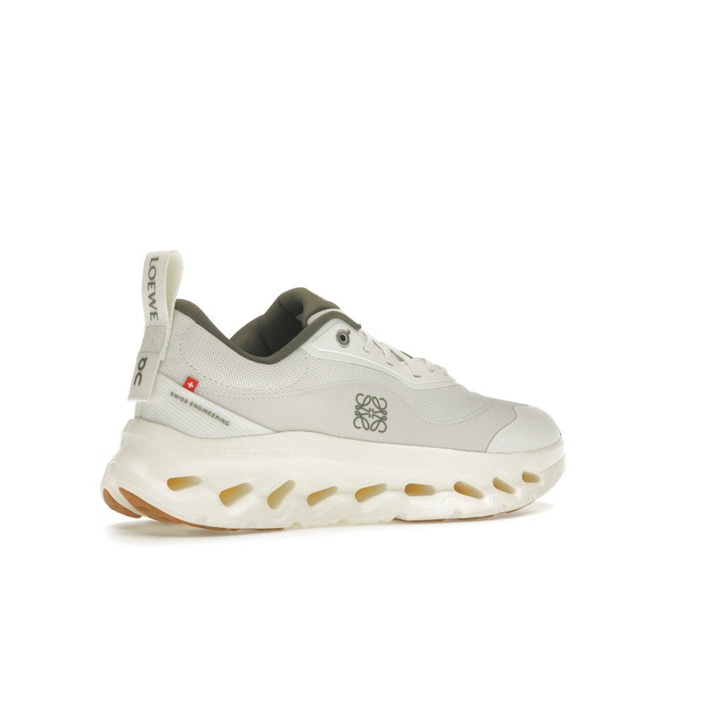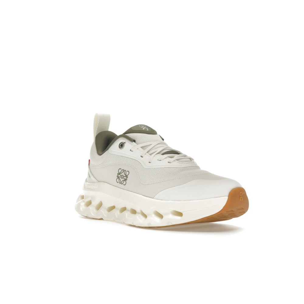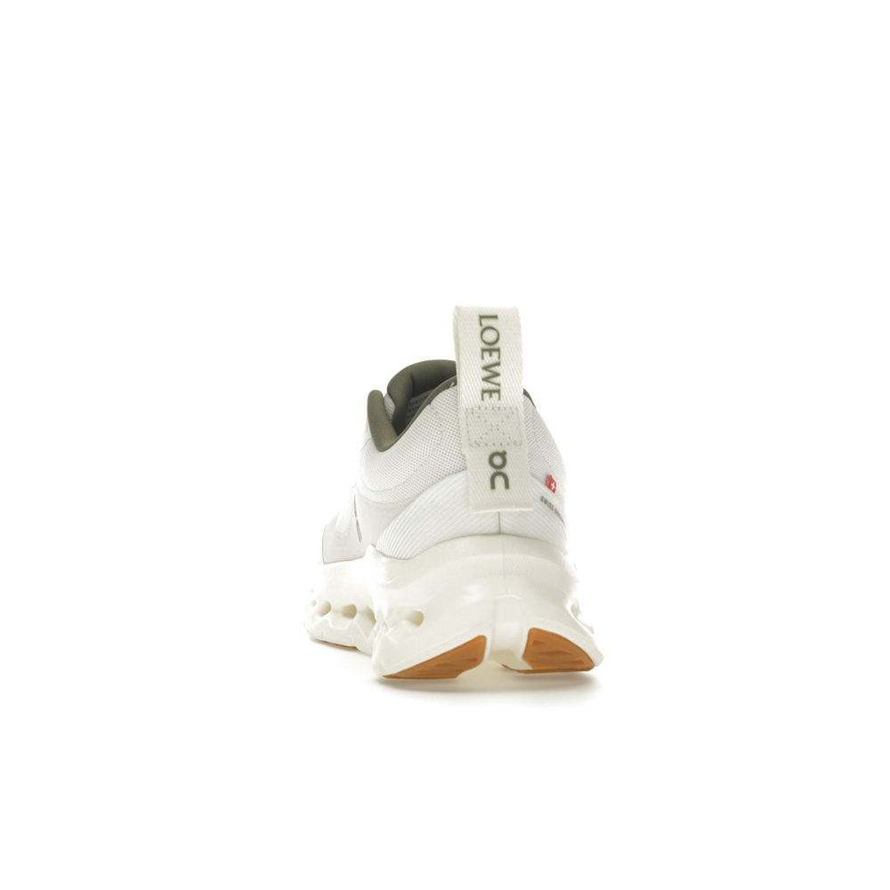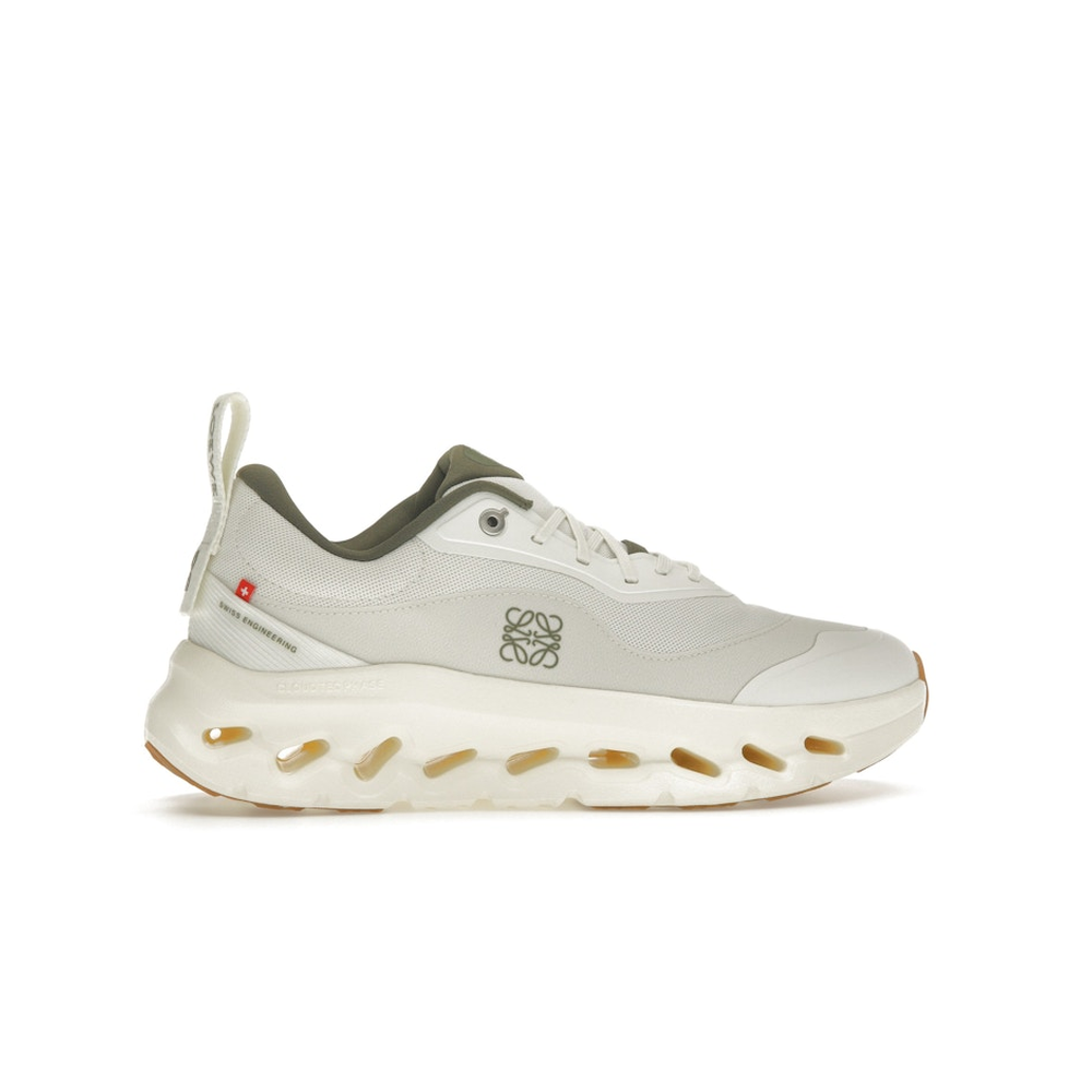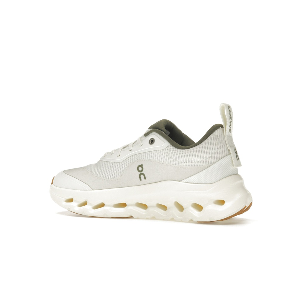 Step into effortless style with the Cloudtilt 2 LOEWE in White Khaki. This premium sneaker blends On Running’s cutting-edge CloudTec Phase technology with Loewe’s iconic design language, delivering a statement piece for the modern lifestyle. The upper features 100% recycled polyester mesh in a crisp white and khaki palette, offering lightweight breathability and refined aesthetics. Designed for all-day comfort, the Cloudtilt 2 ensures adaptive cushioning and a smooth ride from street to studio. With co-branded accents and precision Swiss engineering, the On Cloud Shoes White is a luxury sneaker that turns heads while supporting every step.