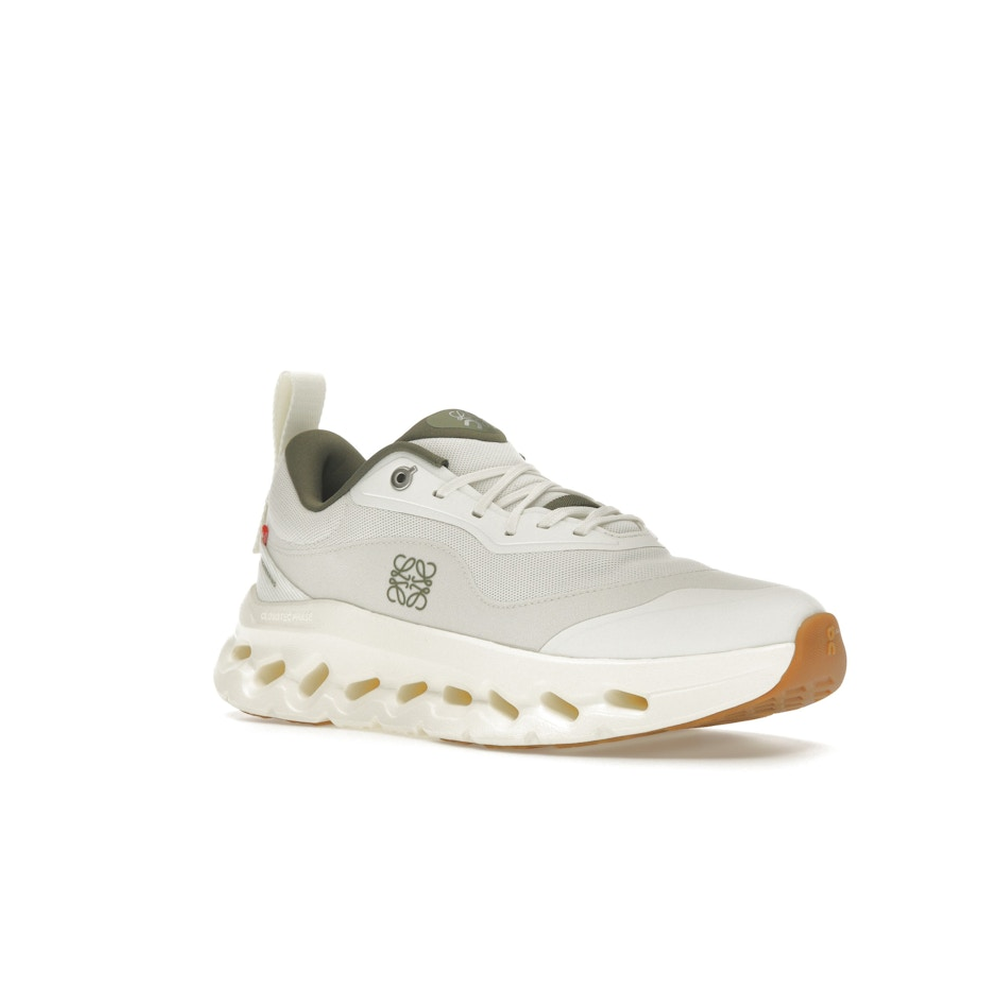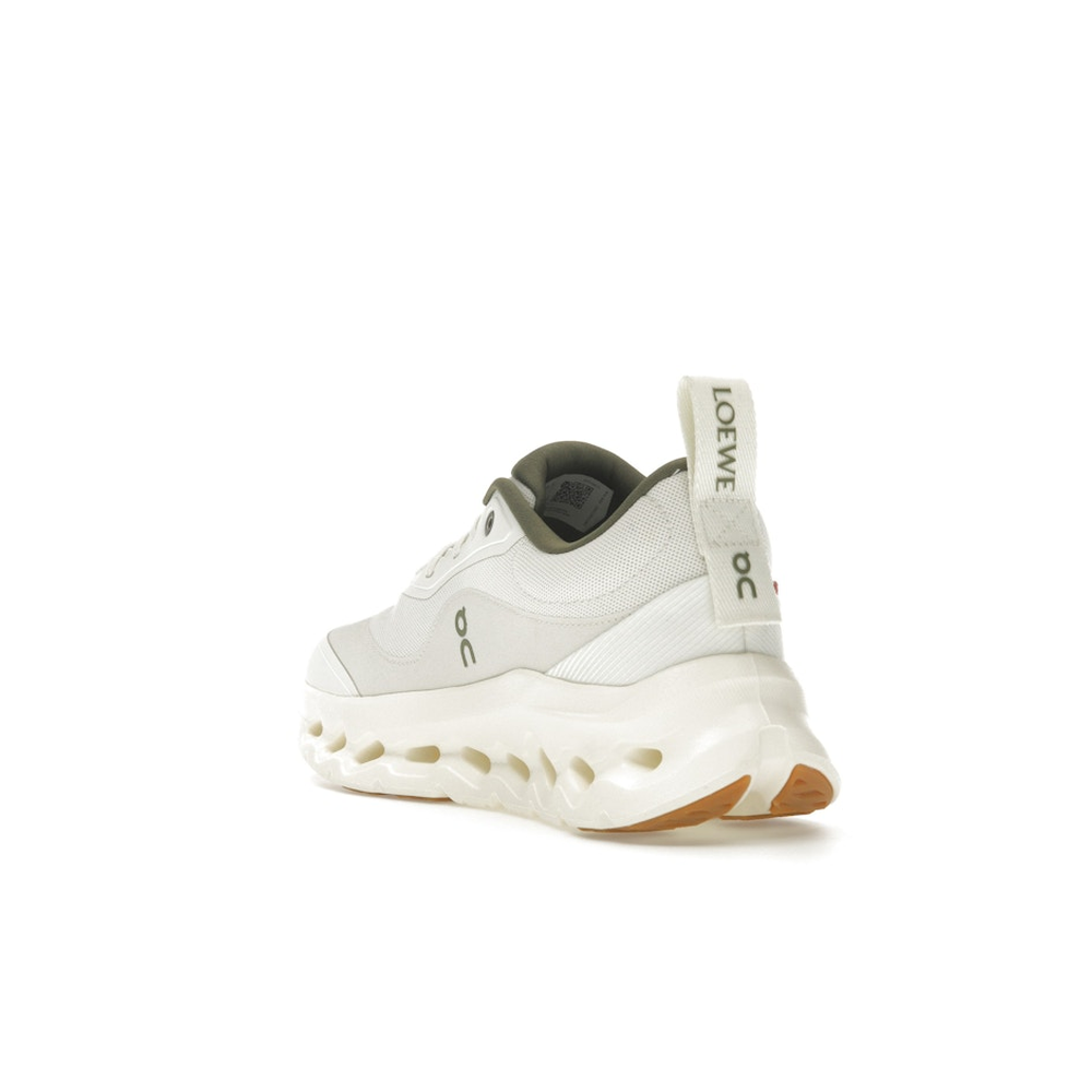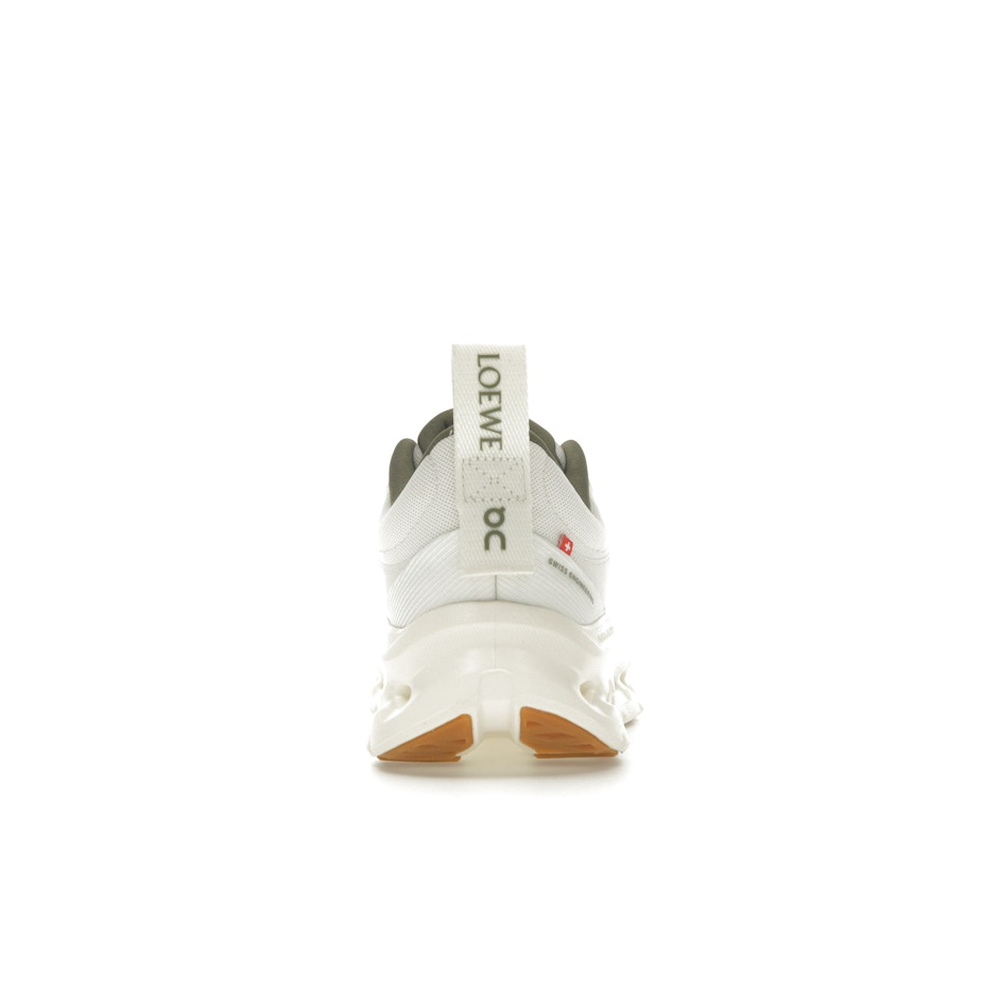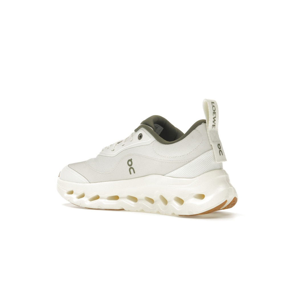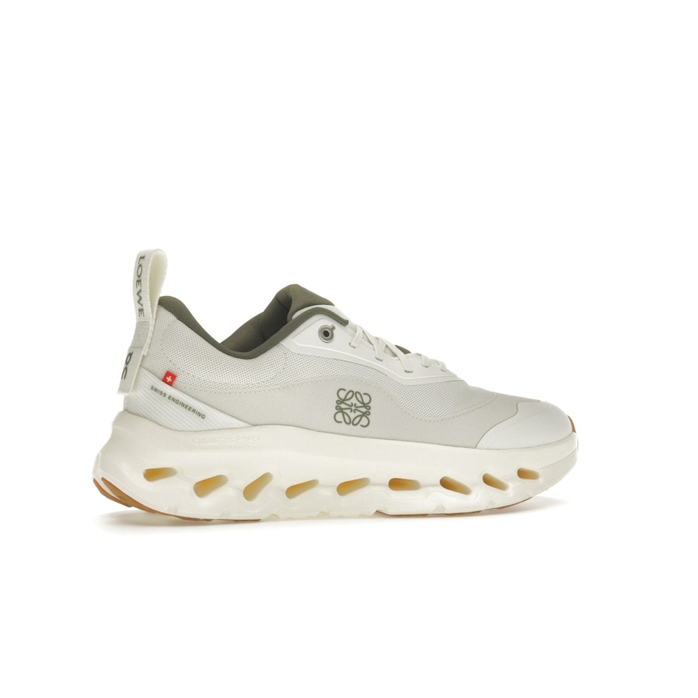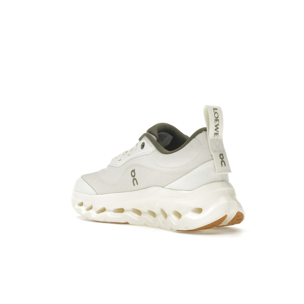 Step into effortless style with the Cloudtilt 2 LOEWE in White Khaki. This premium sneaker blends On Running’s cutting-edge CloudTec Phase technology with Loewe’s iconic design language, delivering a statement piece for the modern lifestyle. The upper features 100% recycled polyester mesh in a crisp white and khaki palette, offering lightweight breathability and refined aesthetics. Designed for all-day comfort, the Cloudtilt 2 ensures adaptive cushioning and a smooth ride from street to studio. With co-branded accents and precision Swiss engineering, the On Cloud Shoes White is a luxury sneaker that turns heads while supporting every step.