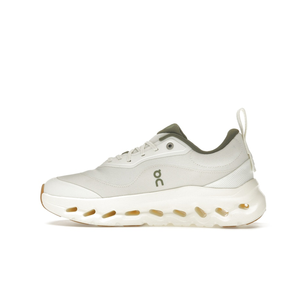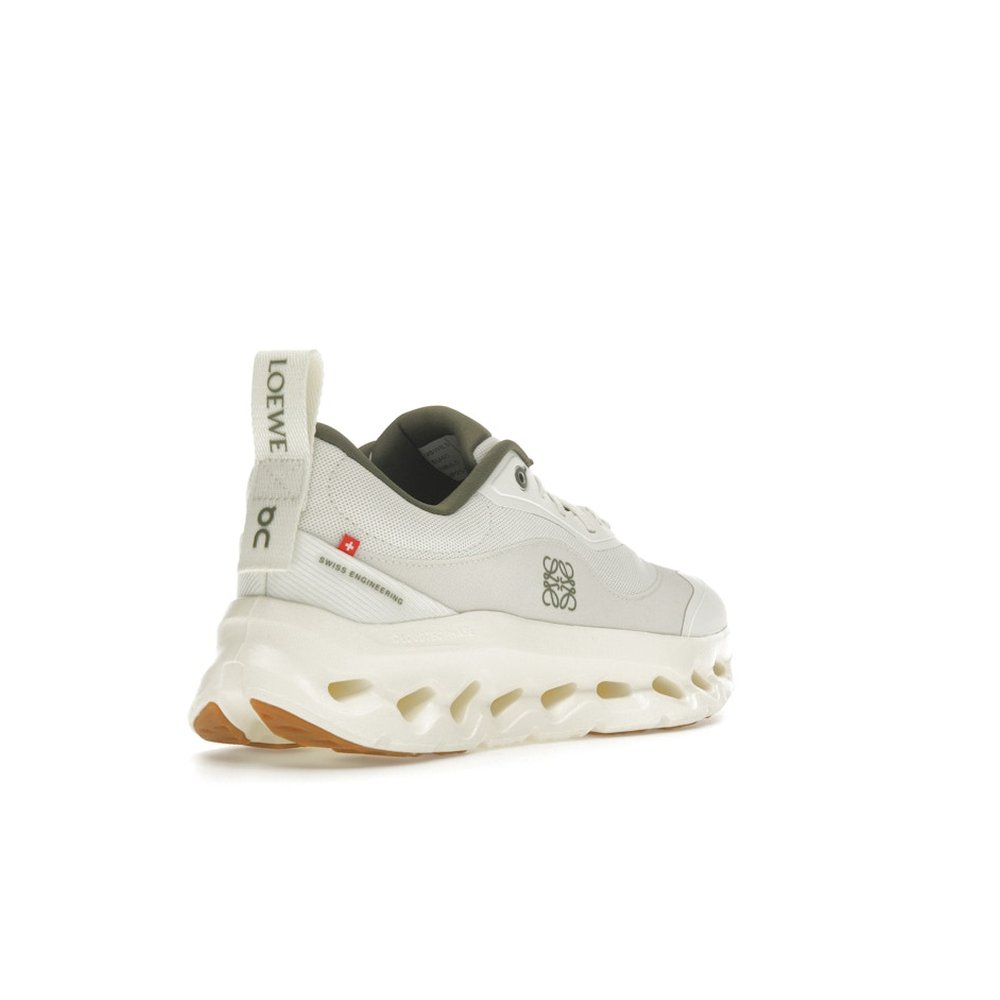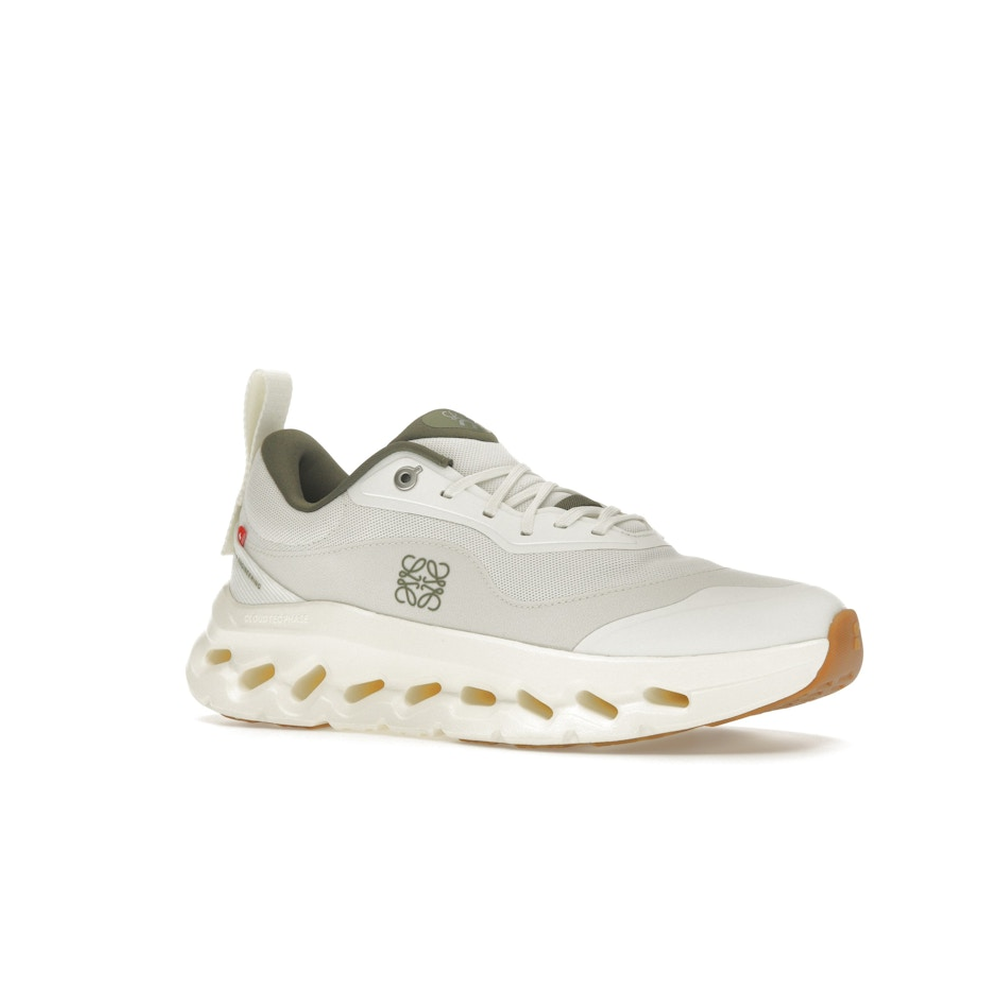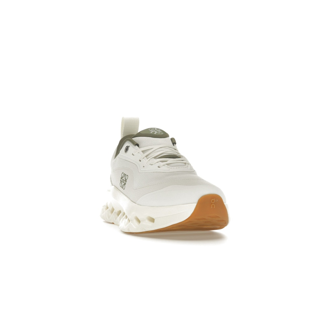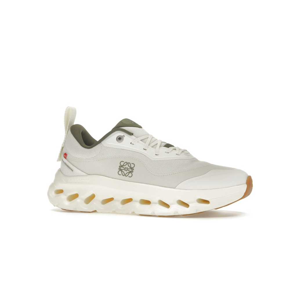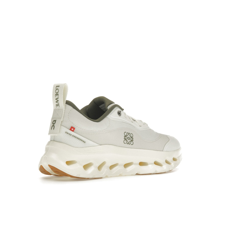Step into effortless style with the Cloudtilt 2 LOEWE in White Khaki. This premium sneaker blends On Running’s cutting-edge CloudTec Phase technology with Loewe’s iconic design language, delivering a statement piece for the modern lifestyle. The upper features 100% recycled polyester mesh in a crisp white and khaki palette, offering lightweight breathability and refined aesthetics. Designed for all-day comfort, the Cloudtilt 2 ensures adaptive cushioning and a smooth ride from street to studio. With co-branded accents and precision Swiss engineering, the On Cloud Shoes White is a luxury sneaker that turns heads while supporting every step.