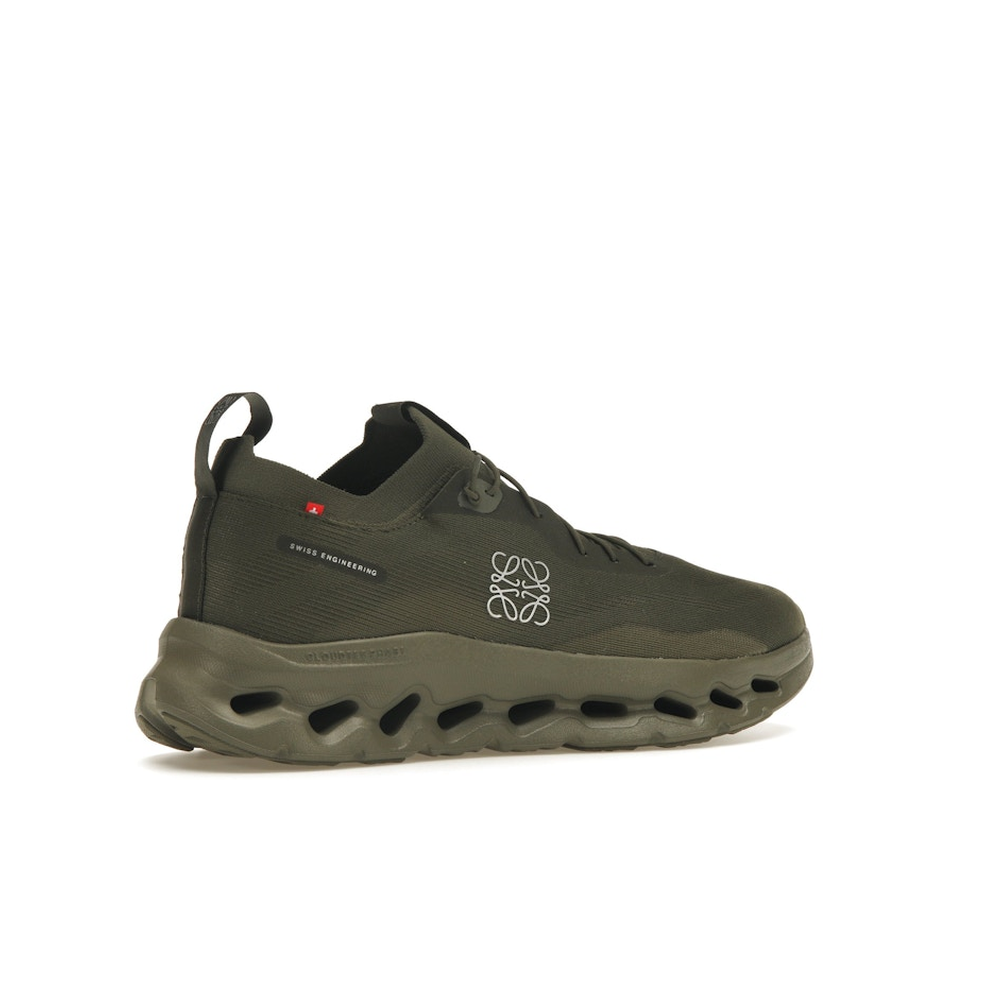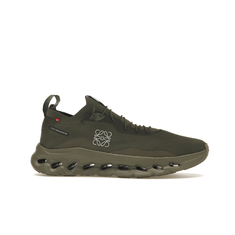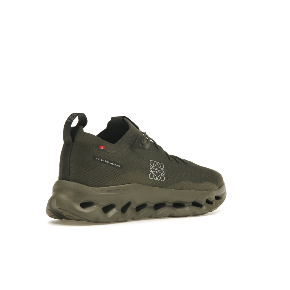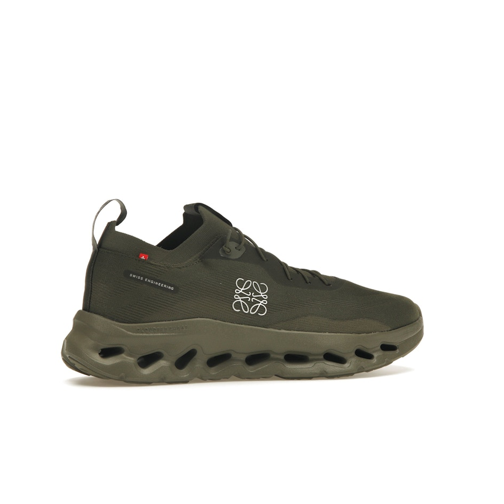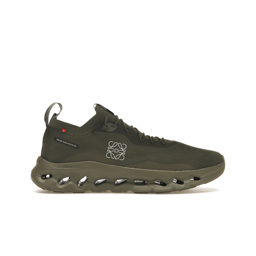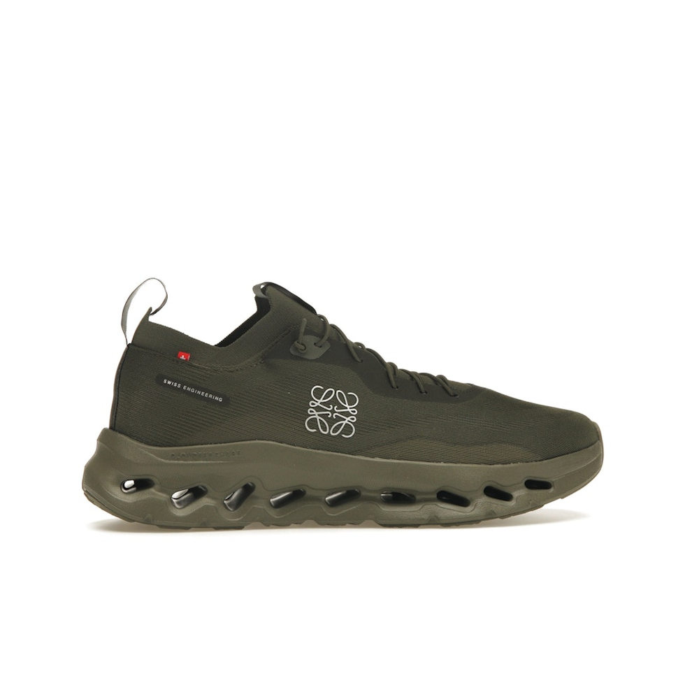 Experience effortless style and elite performance with the On Running Cloudtilt Loewe Khaki Green. This high-end sneaker is the result of a visionary collaboration between Swiss tech innovator On Running and Spanish luxury label Loewe, designed for those who move with intention and style. Crafted with a breathable, recycled polyester mesh upper in a refined khaki green, this shoe blends natural tones with futuristic function. Featuring CloudTec Phase midsole technology, it offers smooth, adaptive cushioning for all-day comfort. With subtle co-branding, modern speed lacing, and sustainable construction, the On Running Cloudtilt Loewe Khaki Green stands out as a go-to choice for those who demand fashion-forward performance.
