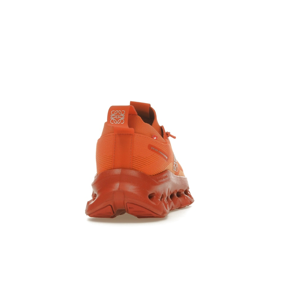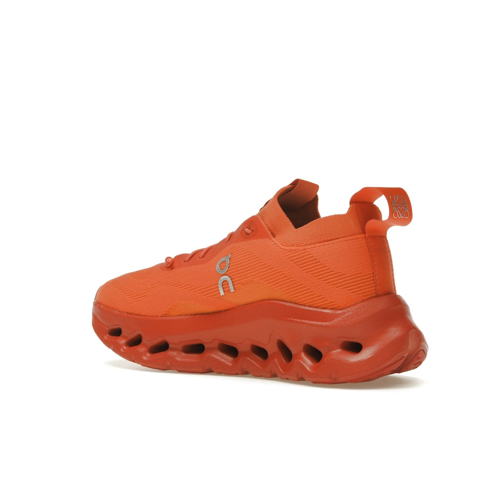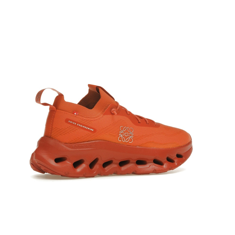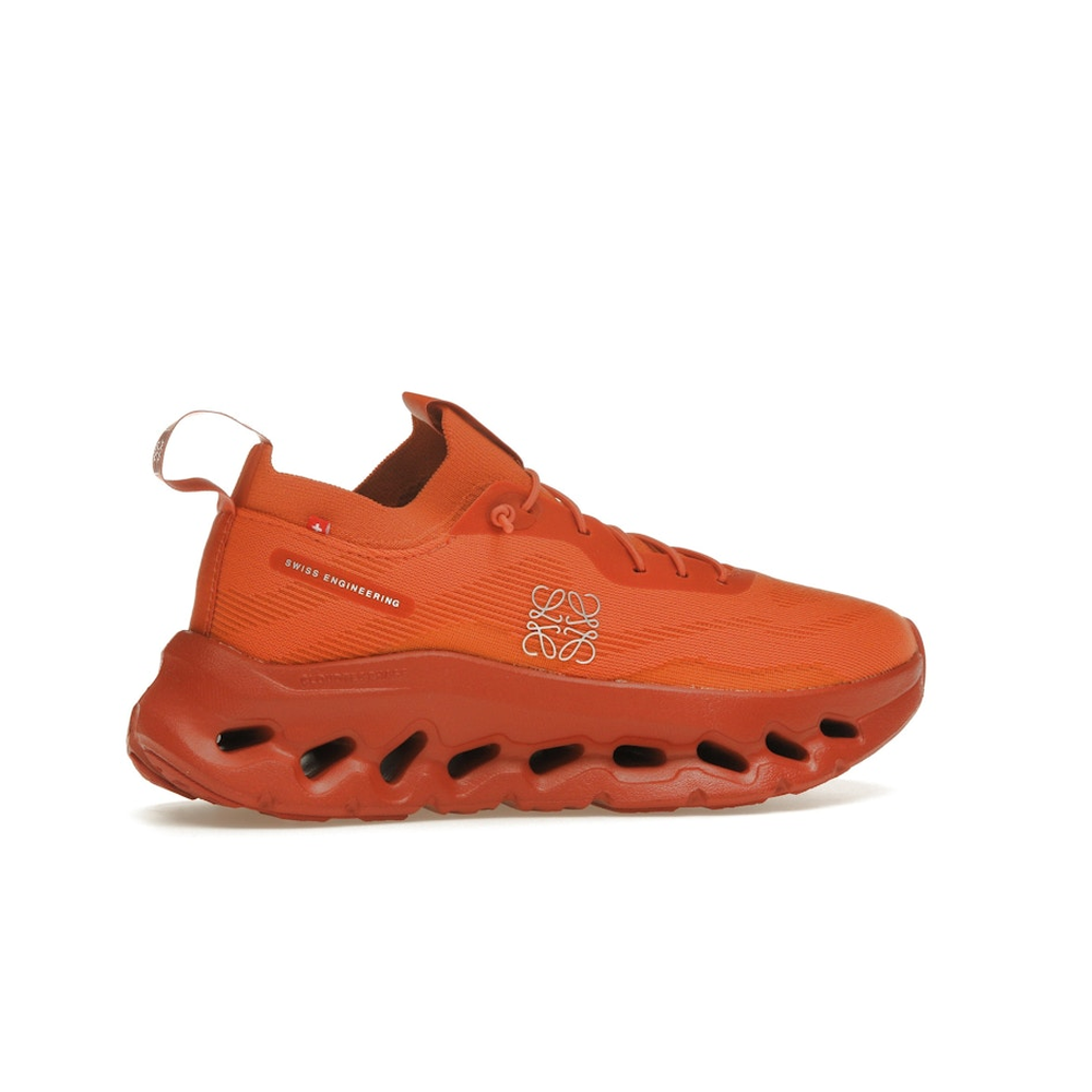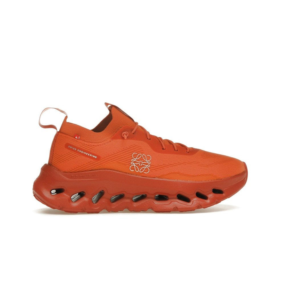 Make a bold statement with the On Running Cloudtilt Loewe Orange – a striking fusion of innovation and luxury design. Born from the collaboration between Swiss performance brand On Running and Spanish fashion house Loewe, this sneaker delivers high-end aesthetics with everyday comfort. The vibrant orange upper, made from 100% recycled polyester mesh, offers breathability and visual impact. Featuring CloudTec Phase midsole technology, the shoe adapts to your stride with lightweight cushioning and responsive support. With minimalist co-branding, speed laces, and premium craftsmanship, the On Running Cloudtilt Loewe Orange is perfect for those who want performance footwear with a fearless sense of style.