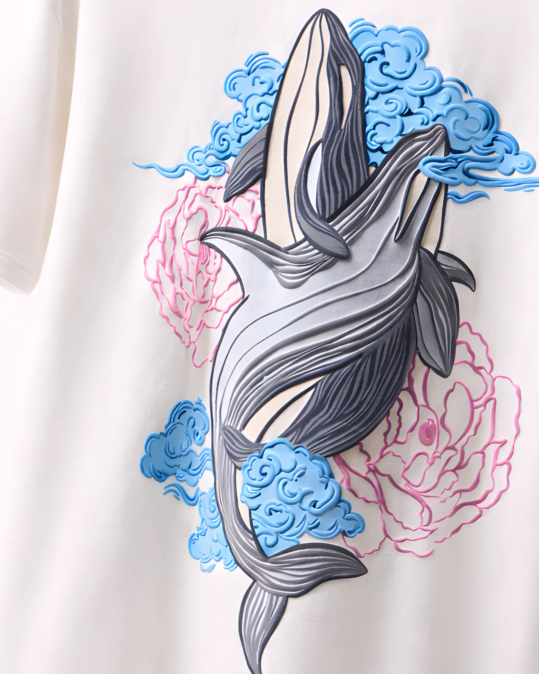 LIGHT IN TONE YET GROUNDED IN MEANING, THIS OVERSIZED T-SHIRT REFLECTS CLARITY THROUGH FLOW. THE ARTWORK RISES WITH SOFTNESS AND PRECISION, CREATING A VISUAL BALANCE BETWEEN MOVEMENT AND CALM.