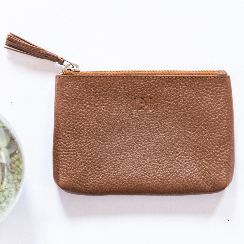 Small pouch with tassel made in soft leather.